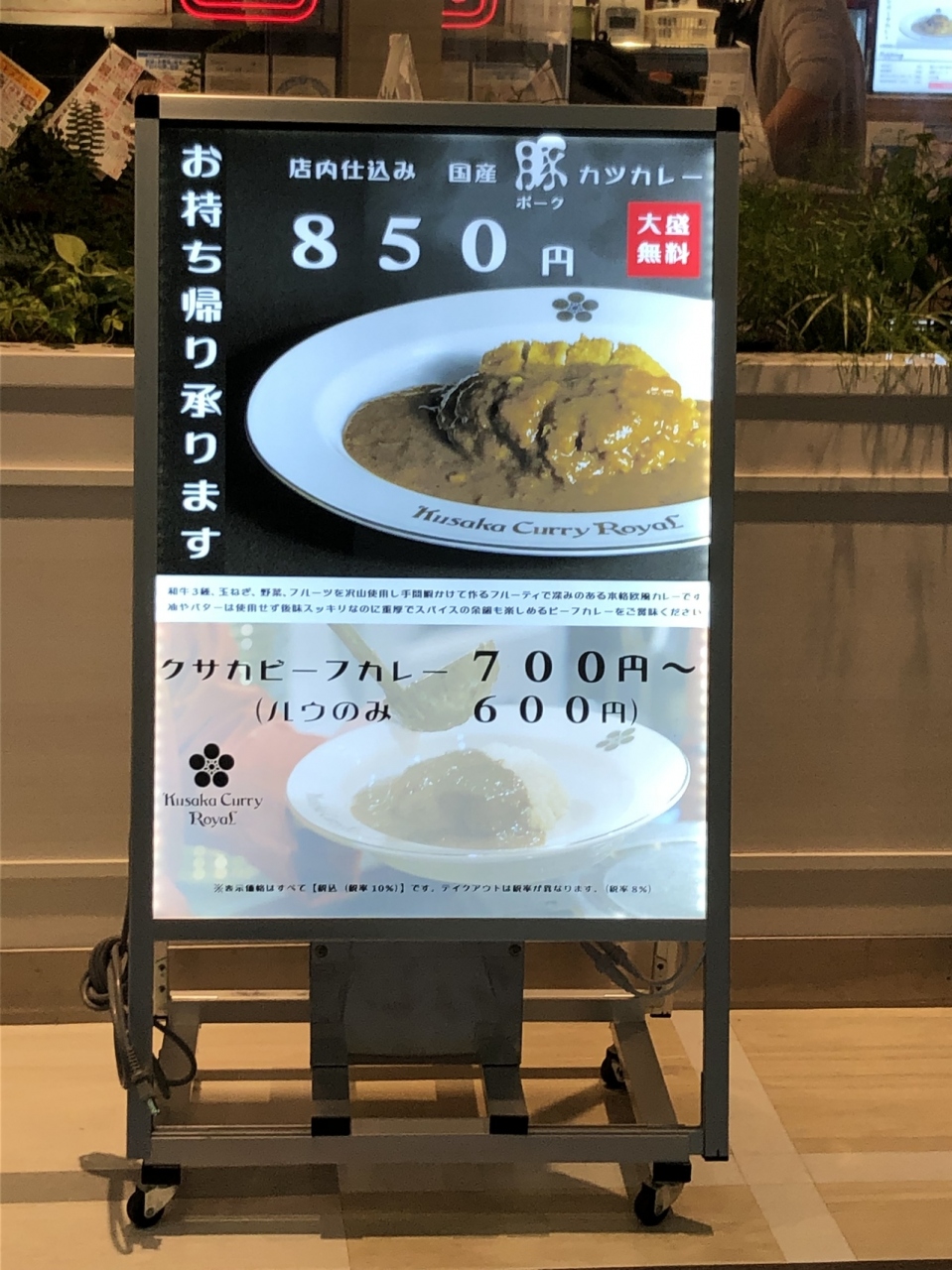 阪急3番街北館地下2階のUMEDA FOOD HALLにあるカレー店。クサカカレーは、南船場(心斎橋)の人気カレー店で、もともとは中百舌鳥で洋食店をやっていたが、カレーが評判で専門店となり南船場に移転したとのこと。こちらはその支店ですが、フードコートなのでセルフサービス。そう言った点では回転も速く、気軽に食べられるかも。