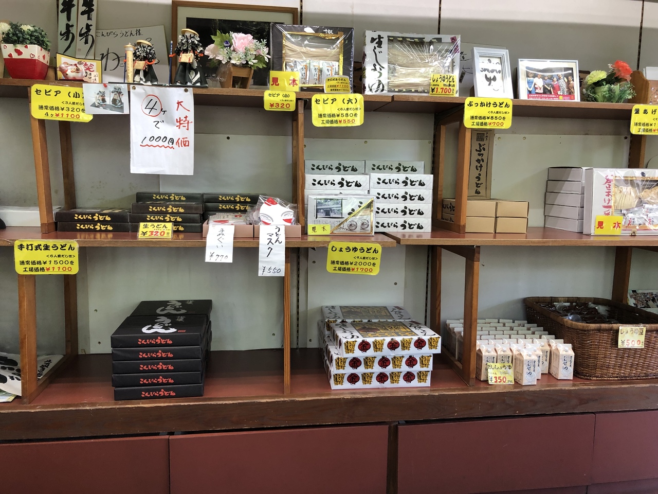 金刀比羅宮の表参道にあるうどん店の本社工場に併設されたお店。築百数十年の登録文化財にも指定されている本店とは全く雰囲気が異なりますが、機械で製麺された出来立ての麺が食べられるのは、工場に併設されたお店ならでは。