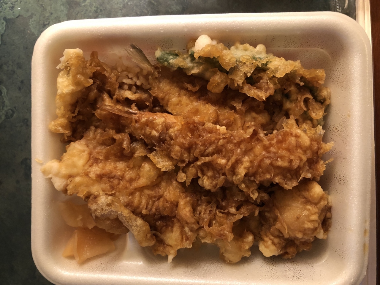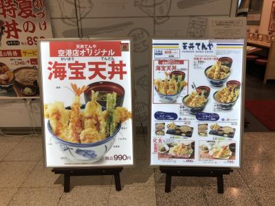 新千歳空港国内線ターミナル1階、到着口4(通常、JAL)横にあるお店。天丼の全国チェーン店ですが、こちら新千歳空港店と羽田空港店限定の「海宝天丼」があり美味。海老、ほたて、いか、白身魚、いんげんに加えて、一本の穴子の天ぷらがのった豪華なもので990円とコスパも良い。500円台のメニューもあるなど空港価格ではなく、持ち帰りにも便利。