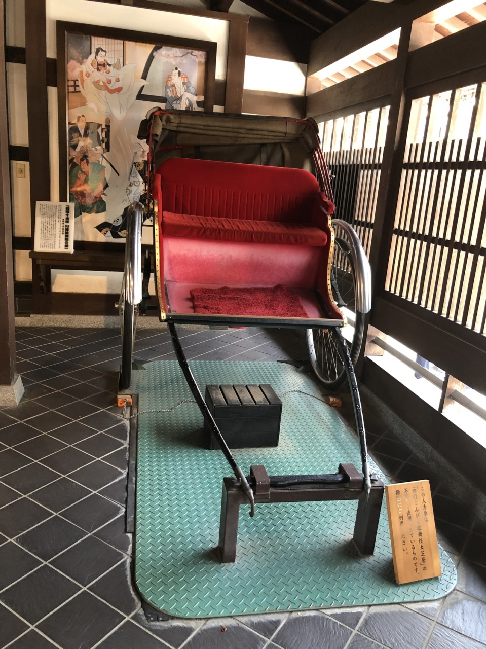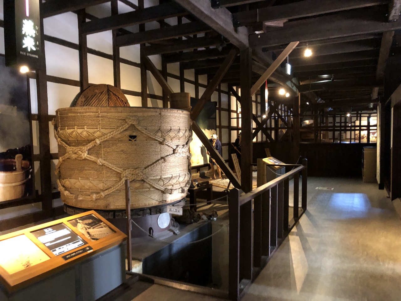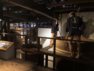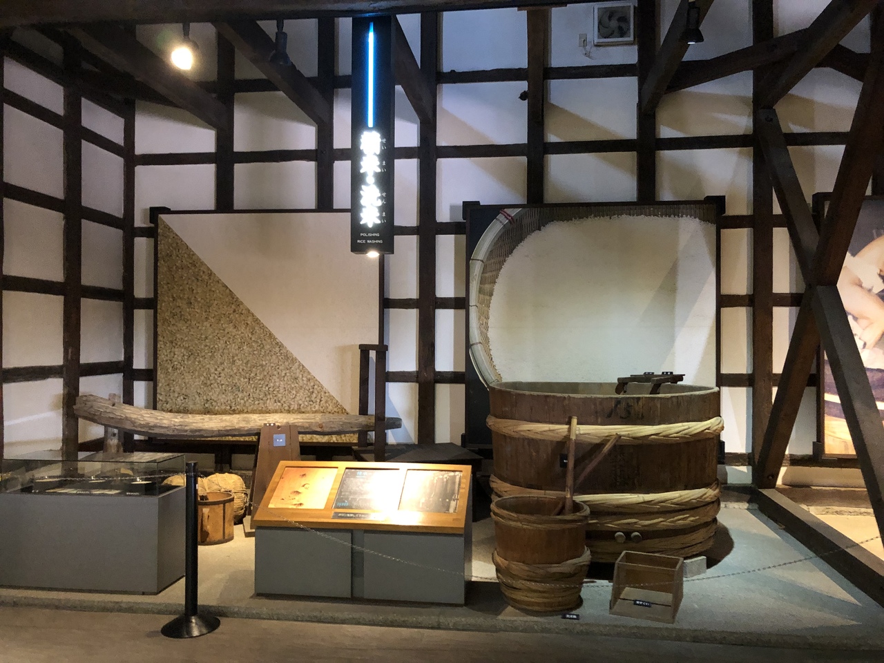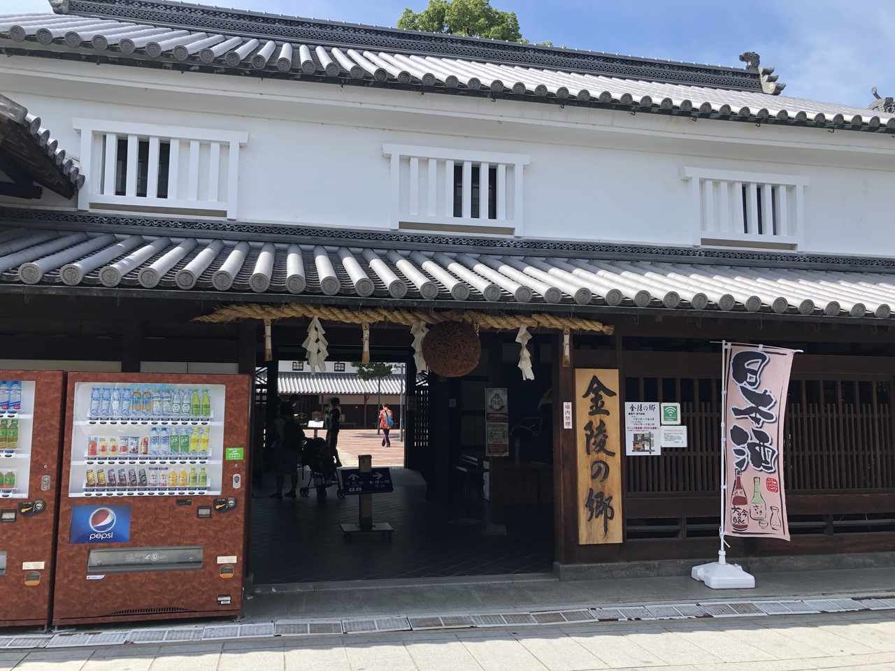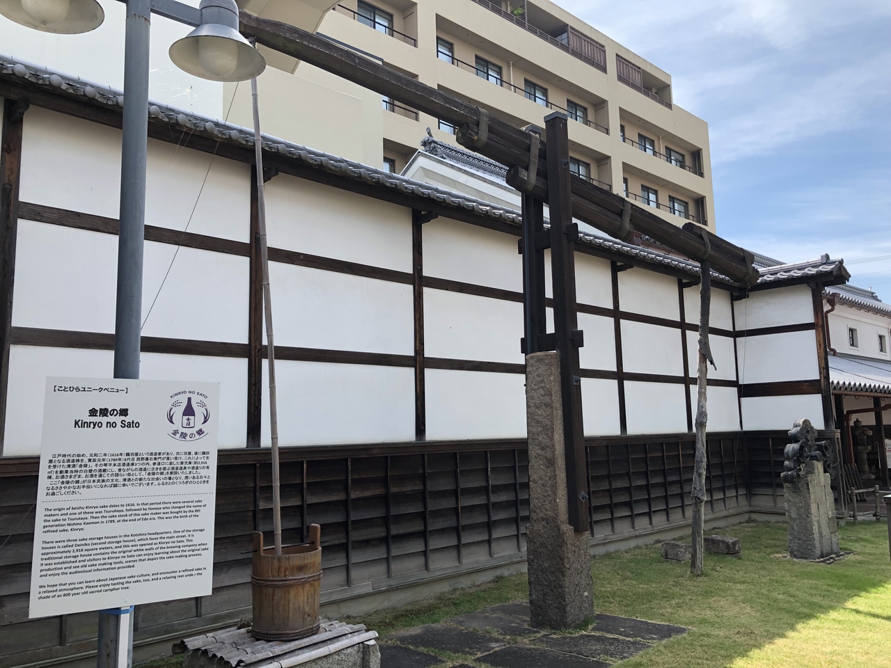 こんぴらさんの表参道にある金陵酒造の酒蔵を利用した資料館。清酒「金陵」は、江戸時代から讃岐こんぴら酒と呼ばれ、金刀比羅宮の御神酒として愛飲されてきた日本酒。琴平の本店にある3つの酒造庫のうち参道に面した第弍庫を創業当時の白壁の酒蔵に復元し、歴史館として公開しているもの。生酒が試飲できる(コロナ感染防止の観点から現在、試飲は中止中)元仕込み蔵の「文化館」と大瓶や大桝が並ぶ「讃酒館」からなり、江戸時代の酒造りの工程を当時の道具や人形を用いてわかりやすく説明。さけびんやラベルも展示。コロナ禍で試飲ができなかったのは残念。入口には、四国こんぴら歌舞伎大芝居のお練りでしよくされている人力車も展示されています。