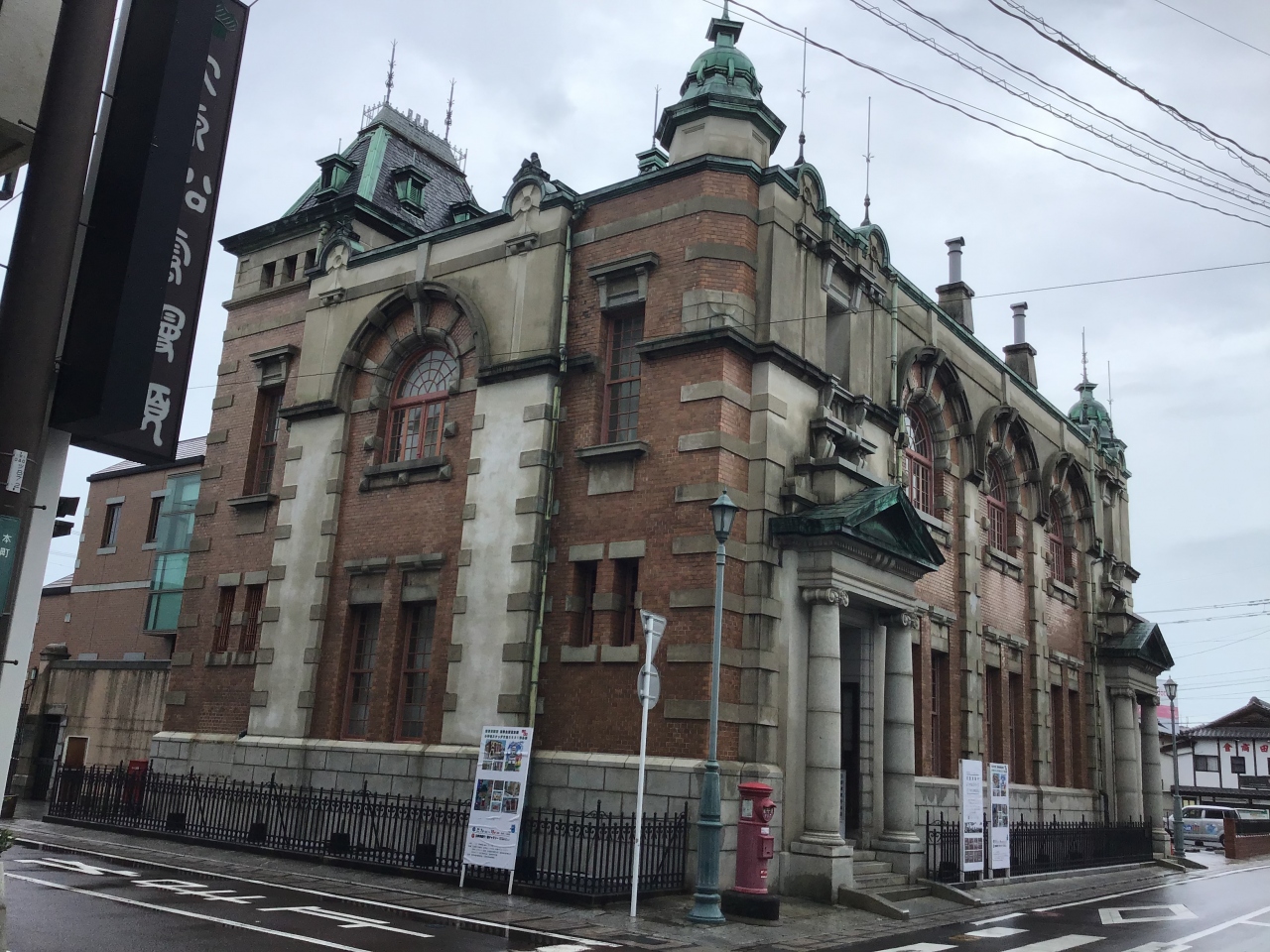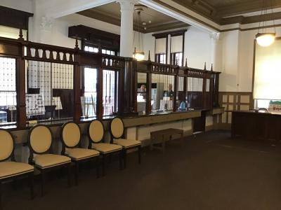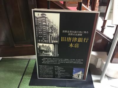 東京駅(丸の内駅舎)、日本銀行本店など、国家的な権威を示す建築物や、奈良ホテル、浜寺公園駅など、和風建築も西洋建築もジャンルにとらわれない個性的な建物を設計した建築家、地元出身の辰野金吾氏が設計監修(実際の設計は弟子の田中実氏)した唐津銀行本店(現在の佐賀銀行)の建物を使った記念館。1997年まで佐賀銀行唐津支店として使用され、同年、唐津市に寄贈され修復。2011年から一般公開されています。外装、カーテン、照明、絨毯などが当時のものに極力近づけられており、銀行の窓口や営業室などは当時のもののように見えます。建物は、辰野氏の代表作とも言える東京駅と同じく、赤煉瓦に白い石材だラインを入れる様式で、弟子の設計ながらも辰野氏らしいものとなっています。
