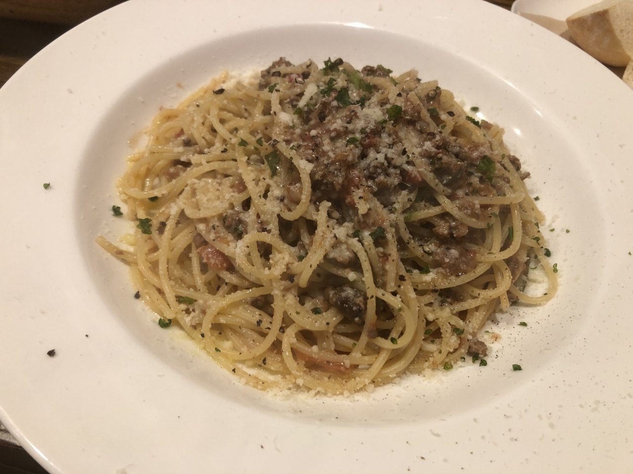 最初に食べたボロネーゼは、平麺ではありませんが、煮込まれた肉とトマトピューレの旨味が凝縮されていていて美味。