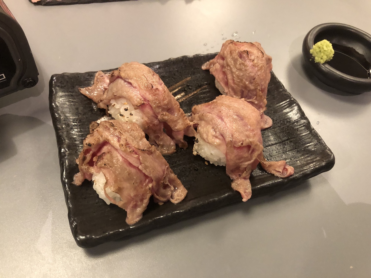 注文してからスライスして提供されるラム肉は、冷凍肉は一切使用せず、生の柔らかい状態で提供されます。従って冷凍肉特有のパサパサしたお肉ではなく、薄いのにしっとりしています。羅臼産の天然昆布を使った出汁汁でしゃぶしゃぶすると、さらに余計な脂が取れて美味。特製のポン酢でよりさっぱり食べられます。牛肉のしゃぶしゃぶよりもヘルシーで、ジンギスカンよりもクセがなく。たくさんお肉が食べられます。また、元祖炙りラム肉寿司は、生のラム肉(しゃぶしゃぶで食べるもの)を俵おにぎりに巻いて、バーナーで炙ったものをわさび醤油で食べるもので、脂乗りがちょうど良く絶品。