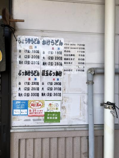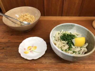 人気メニューという「しょうゆうどん」の冷をオーダー。麺はモチモチ、しっかりしていて、喉越しがよい。厳選した鰹節、鯖節、昆布をブレンドした出汁醤油は、うどんの旨さを引き出すもので美味。こちらのお店はなんといっても、ぶっかけうどん150円(大200円、特大250円、天ぷらも天ぷら110円、小エビのかき揚げ120円と、コスパが良いこと。天ぷらを二つ頼んでもワンコイン以内に収まるのも嬉しい。- 旅行時期