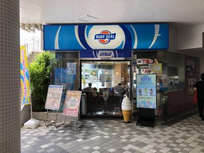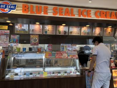 パレットくもじの1階、バス停側にあるブルーシール。小さなお店ですが、一通りのアイスやソフトクリームは揃っています。
