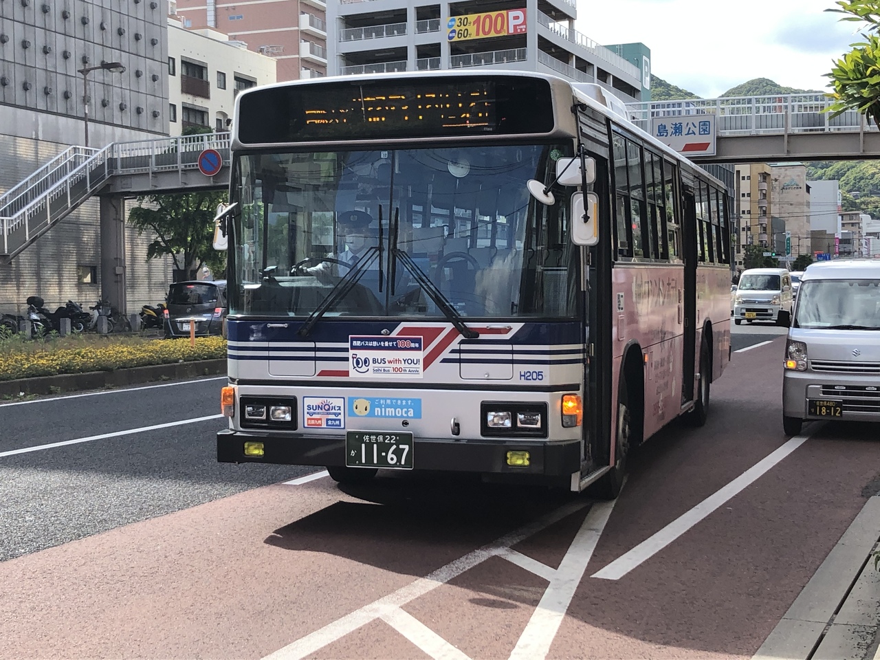 長崎県佐世保市を拠点に長崎県北部の平戸市、松浦市、佐々町などを中心に多数の路線を運行するバス事業者。佐世保市中心部から郊外、周辺市町村を結ぶ路線も多く、まて五島列島のうち中通島、若松島にも路線を有しています。創業1920年の100年以上の歴史をもつ会社で、2019年には佐世保市営バスの廃止に伴いその路線を引き継いだことから、さらに路線が拡充されました。