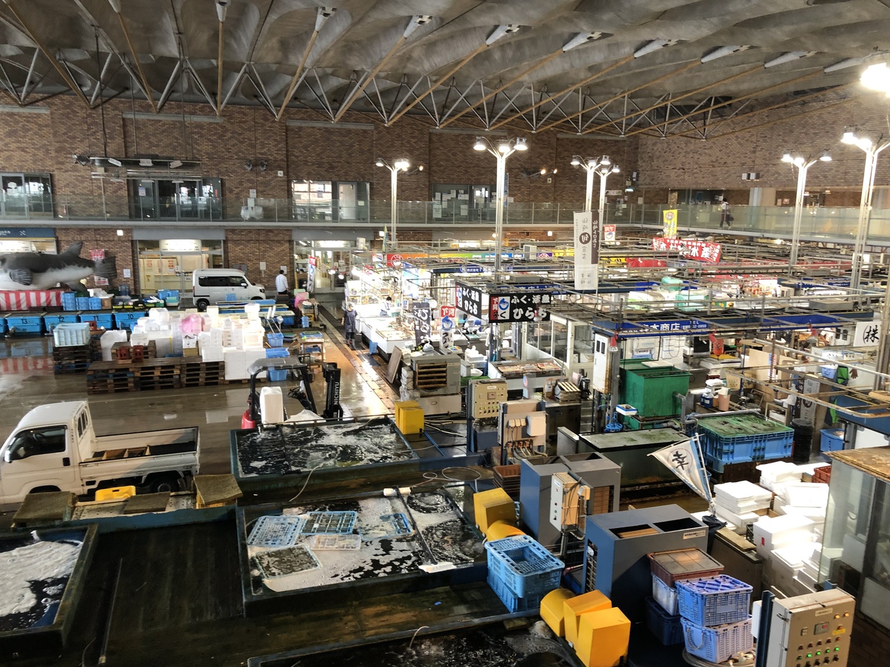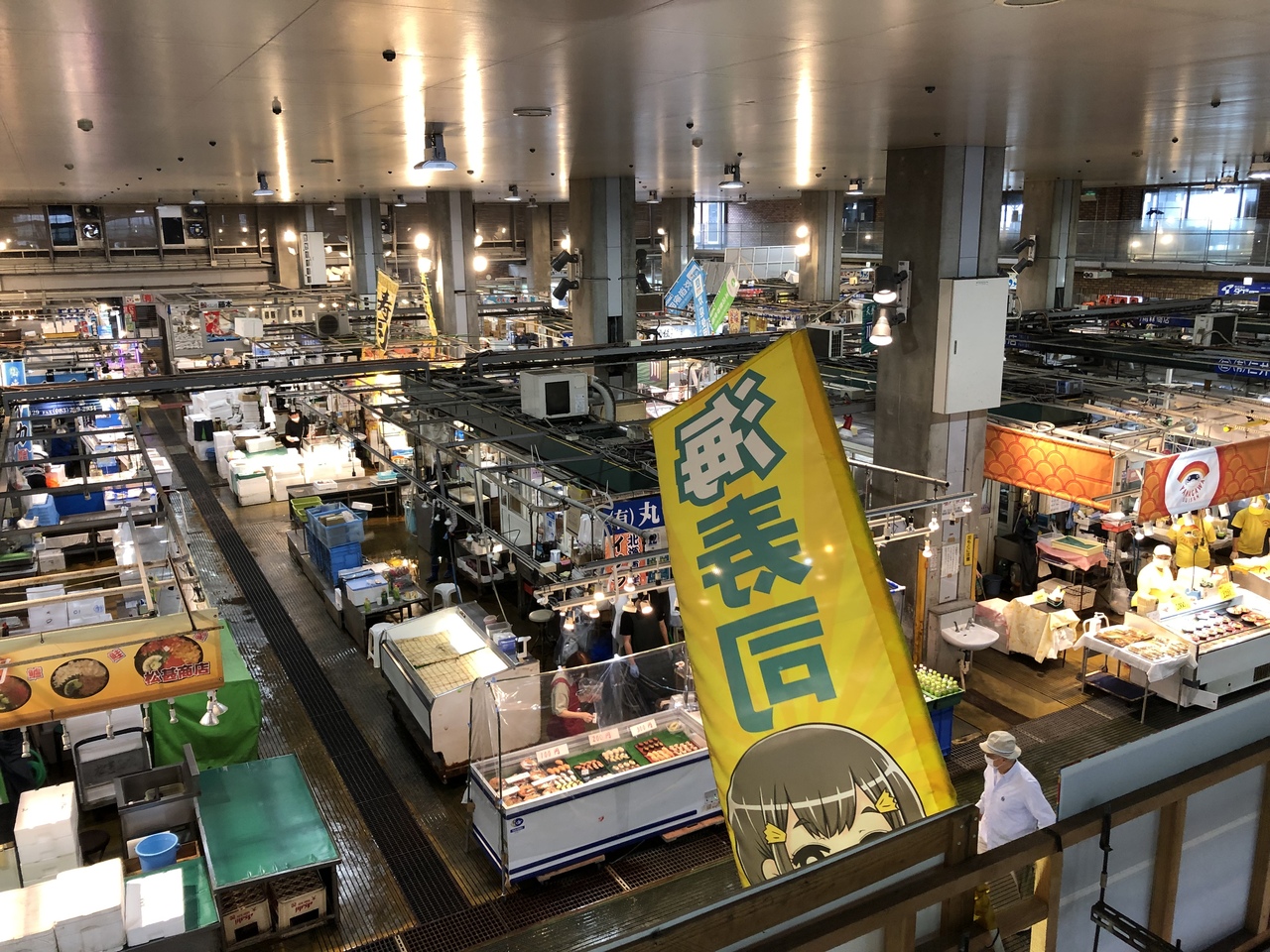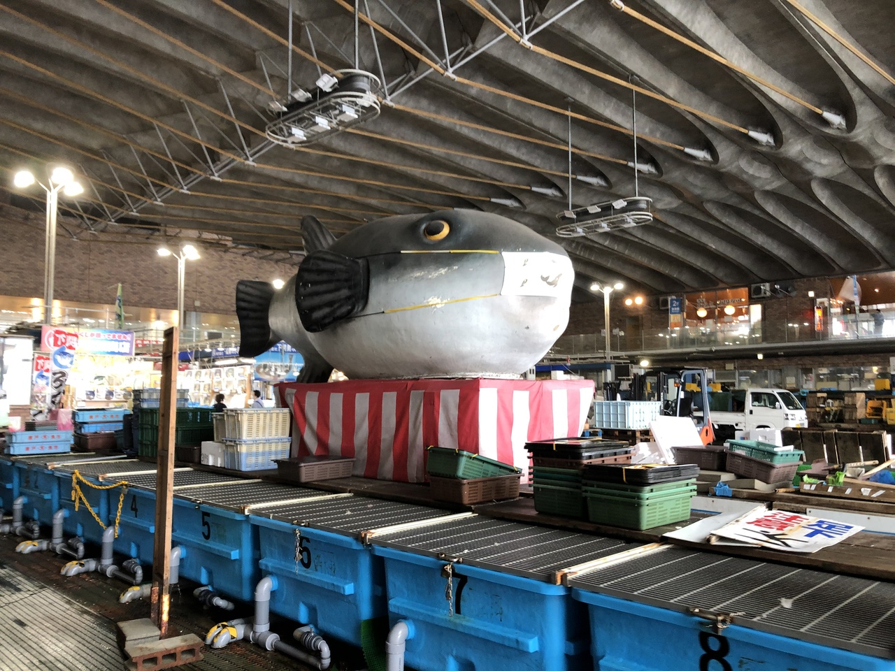 JR下関駅からバスで10分、対岸には門司の街の見える下関の中心地、唐戸にある市場。
