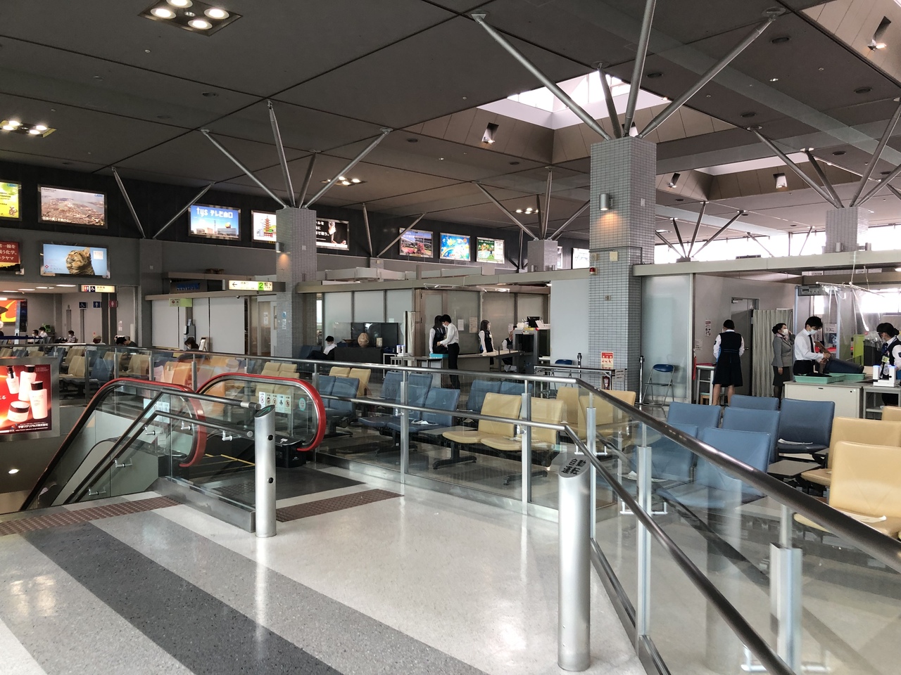 現在の国内の就航都市は東京のみ。JAL4便、ANA3便、SFJ3便(全てANAとコードシェア)のトラブルトラック。以前は新千歳や那覇にもフライトがありましたが現在は廃止、もしくは休止中。国際線は以前はエアソウルが就航していましたが、現在定期便の就航はなく、チャーター便のみなので、国際線ターミナルは閉まっていました。