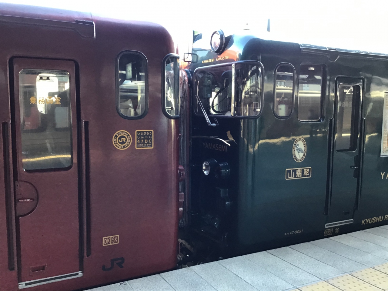 2020年7月豪雨による甚大な被害のため、2021年7月現在、復旧の見通しが立っていません。このため、2020年から肥薩線応援企画として、通常、肥薩線の同区間を走るD&S列車である「かわせみ やませみ」と連結した臨時列車として、博多~門司港を運行しています。車窓は期待できませんが、雰囲気は十分味わえます。ただ、併結している「かわせみ やませみ」の方が車内設備が豪華なので、同じ料金なため、かなり差があるなとも感じました。