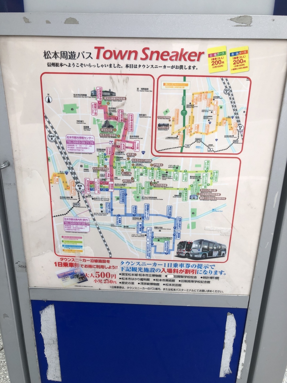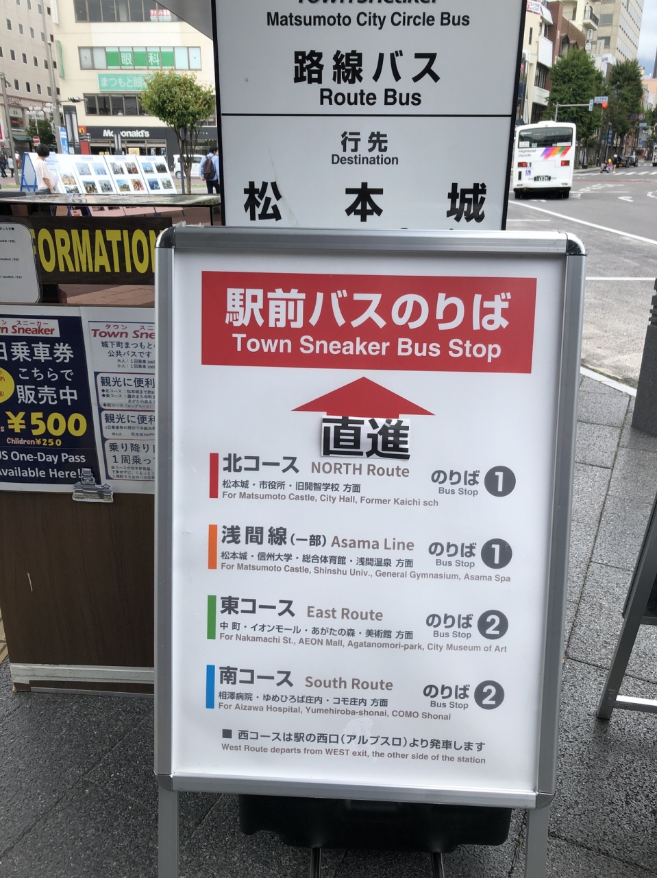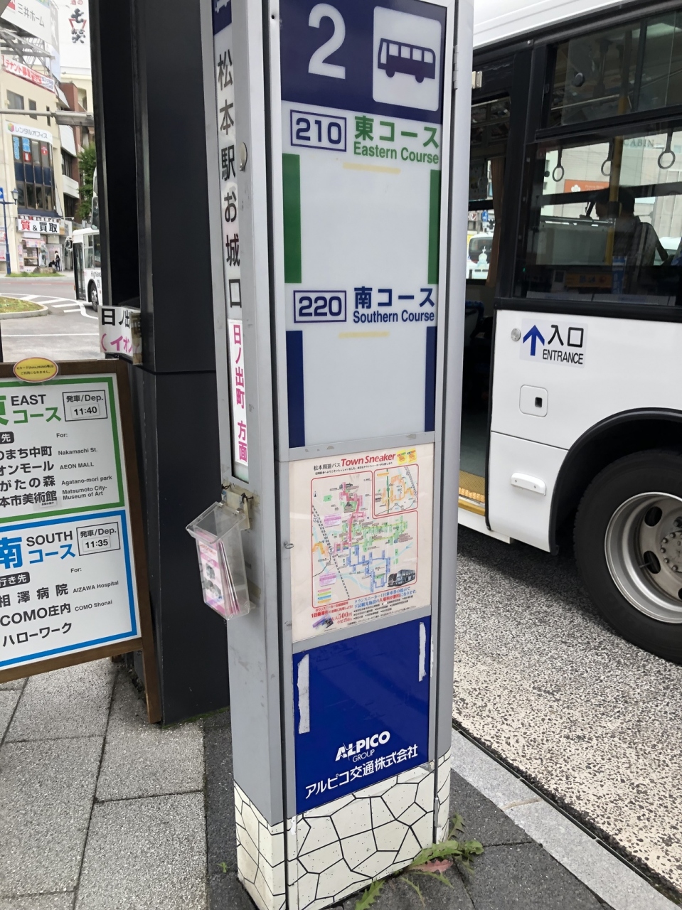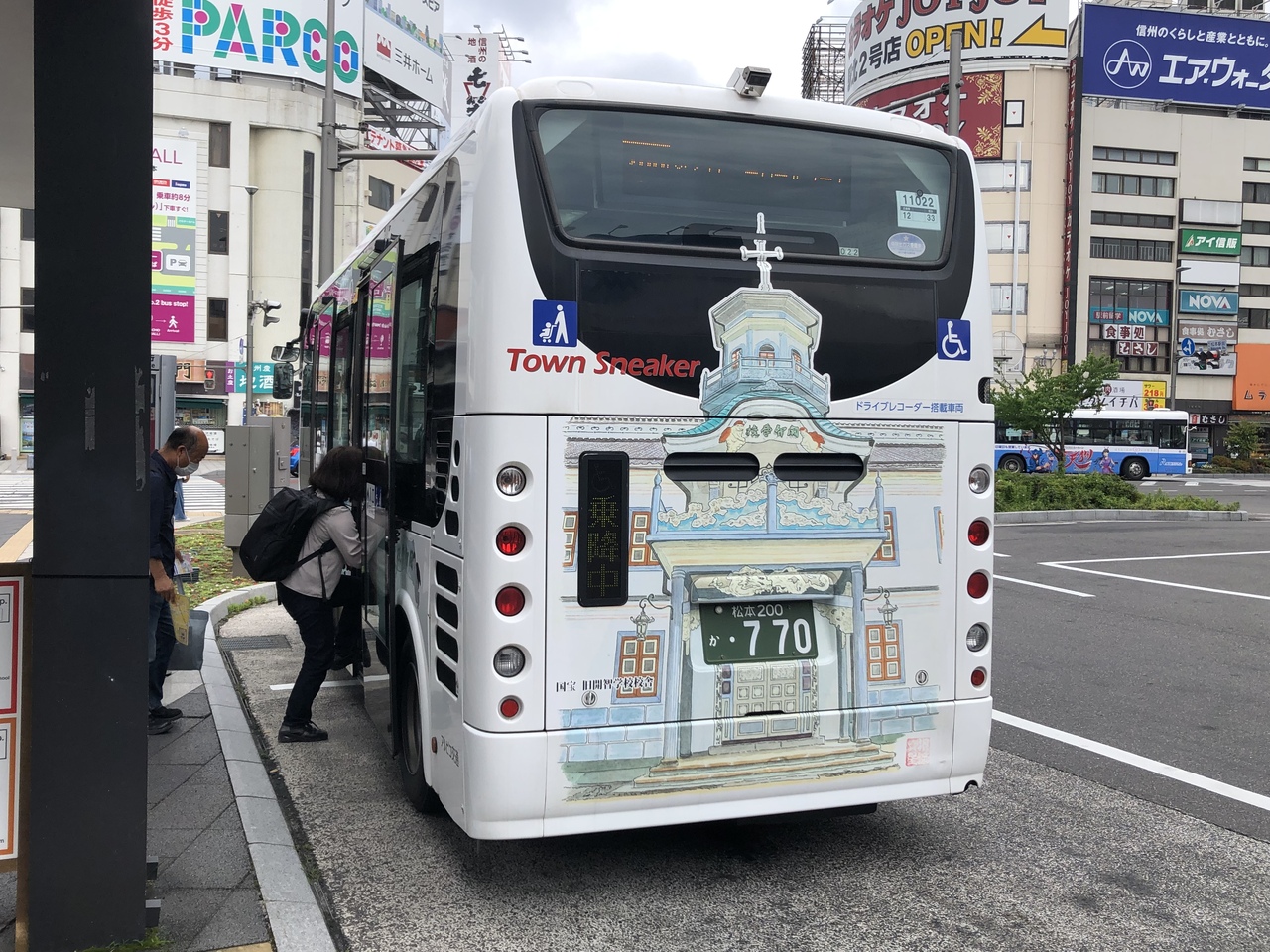 松本市内の有名観光スポットや市内主要拠点を巡る周遊バスで、松本市がアルピコ交通に委託して運行。松本バスターミナルではなく、松本駅前のバス乗り場を発着。松本城や旧開智学校方面の北コース、中町・あがたの森(イオンモール松本)方面の東コース、庄内・相澤病院方面の南コース、合同庁舎・松本歴史の里方面の西コースの4路線がありますが、観光で使うのであれば北コースと東コースを組み合わせると効率よく観光スポットを巡ることができます。松本市内中心部は、城下町であることから道が狭く、一方通行も多いものな、小型バスを生かして、大型バスでは走ることのできない道も通っていきます。