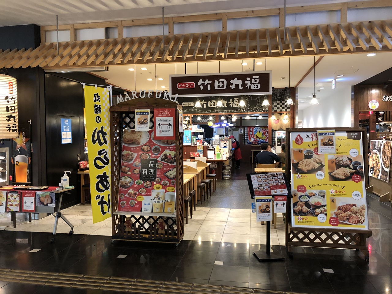 JR大分駅に直結したアミュプラザおおいたの豊後にわさきいっぷく横丁にあるお店。改札口から少し離れたフードコートのような、他の飲食店と連なっている、通路側には壁がなく、隣のお店との仕切りも低い低いお店ですが、地元大分では有名な、竹田市に本店のある約50年続く老舗の唐揚げのお店。