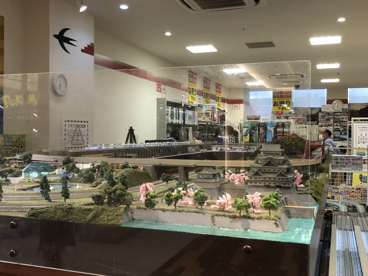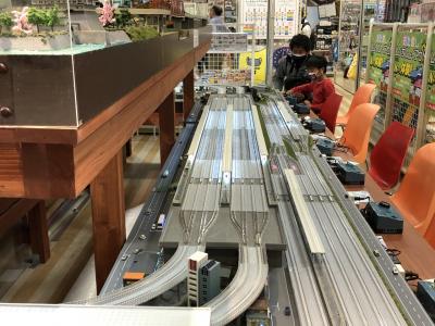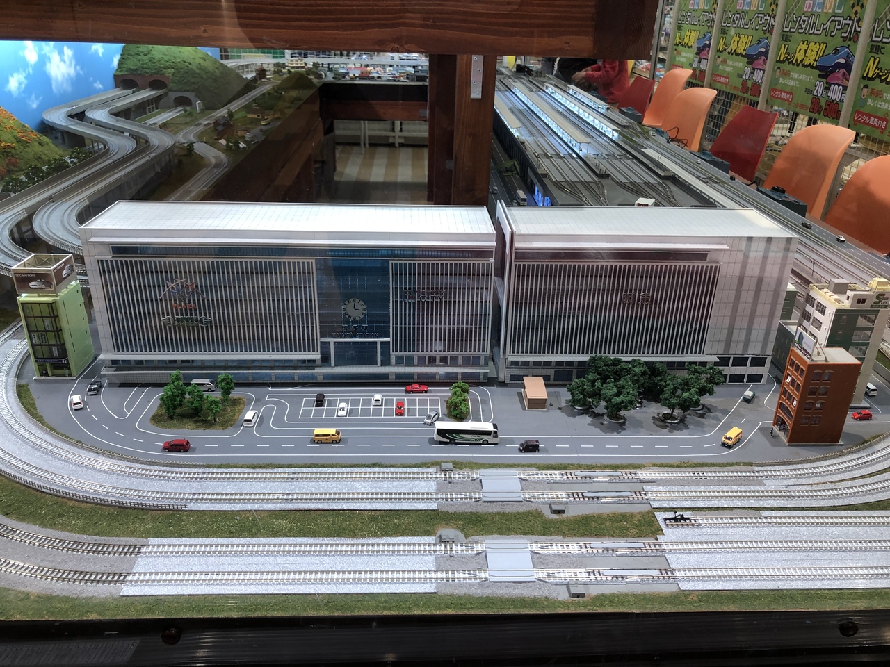 JR博多駅直結の博多シティアミュプラザ博多8階にある鉄道模型店。Nゲージを中心とした新品、中古品、部品、ジャンク品の鉄道模型、プラレール、トミカ、グッズとお店のある場所を意識したレイアウトと言った商品構成は、他の店舗と同じですが、お店の広さのせいかやや窮屈に感じます。