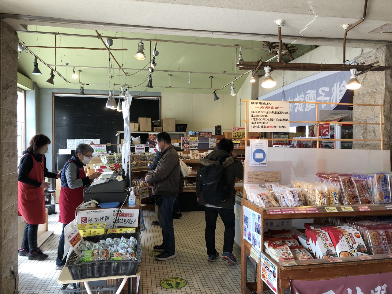 銚子電鉄の終点、外川駅の一つ手前にある犬吠駅の売店。犬吠埼などの観光の拠点の駅であることから、駅舎は銚子電鉄の中でも大きめに作られたおり、売店はその中にあります。今や銚子電鉄の経営を支えるぬれ煎餅の焼き立てが食べられるのは、こちらとぬれ煎餅駅だけ。また、ぬれ煎餅の手焼き体験もできます(いずれもコロナ禍のため現在休止中)。このほか、観音駅から移転した名物のたい焼きや、地ビールやお菓子、さらには銚子電鉄の硬券やキーホルダーをはじめ鉄道グッズも購入できます。駅舎内の施設ですが駐車スペースもあるので、車での来訪も可能です。少しでも銚子電鉄の経営に役立つといいですね。