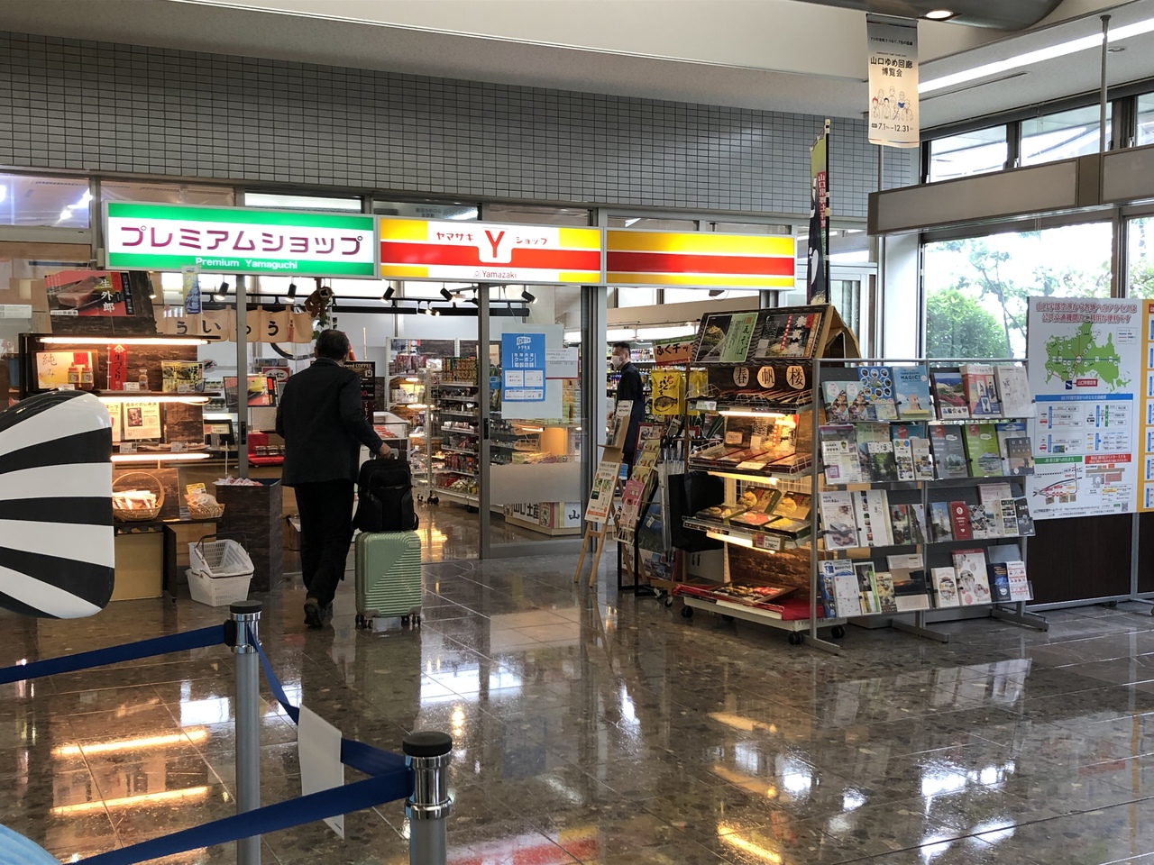 山口宇部空港国内線ターミナル1階、到着ロビーにあるコンビニ。山口宇部空港は、本州最西端の空港とはいえ、1日10便の東京/羽田行きのフライトがあるだけの小さな空港なので、レストランも少なく、コンビニもここだけなので重宝。簡単なお土産なども購入できます。