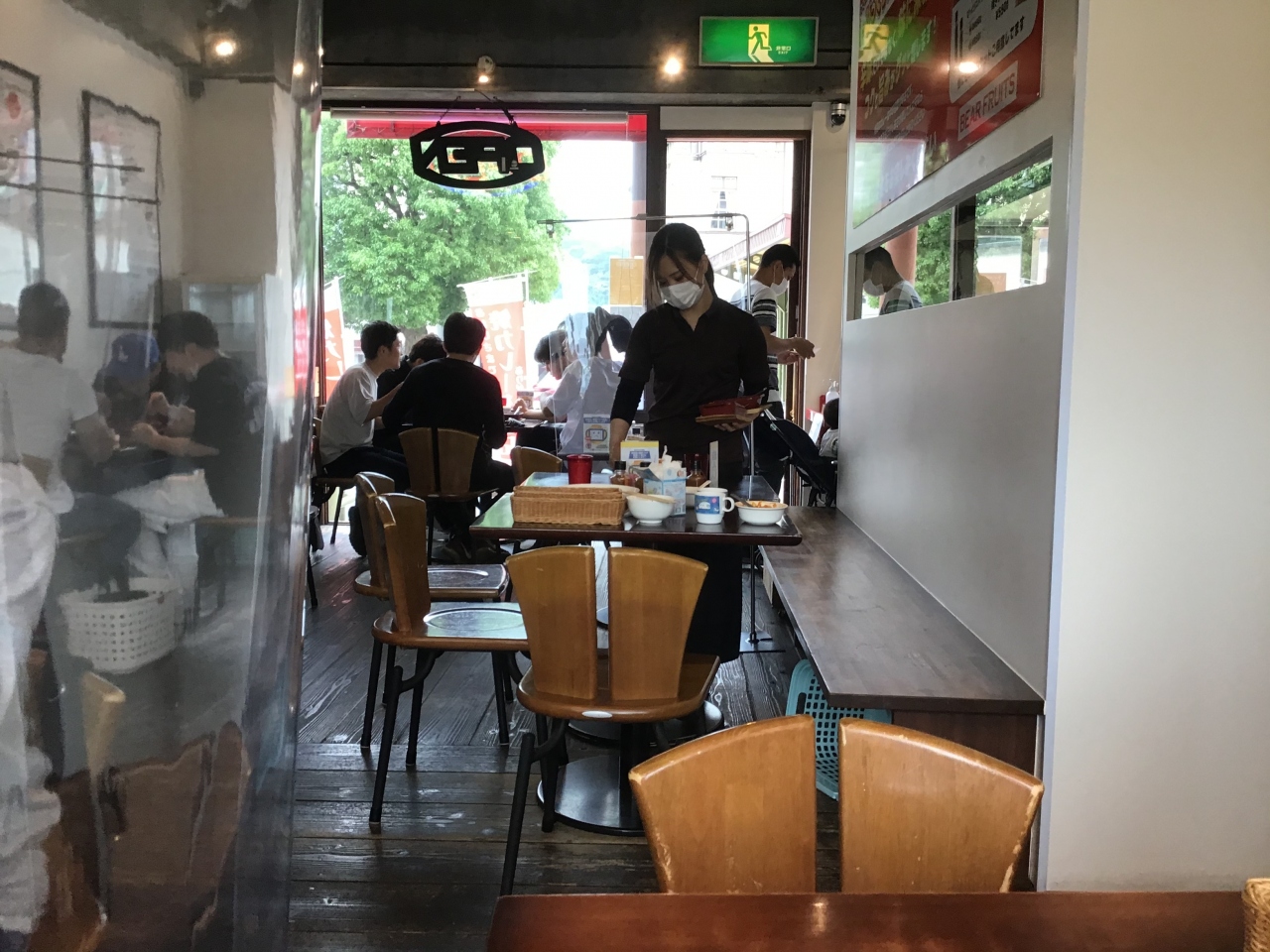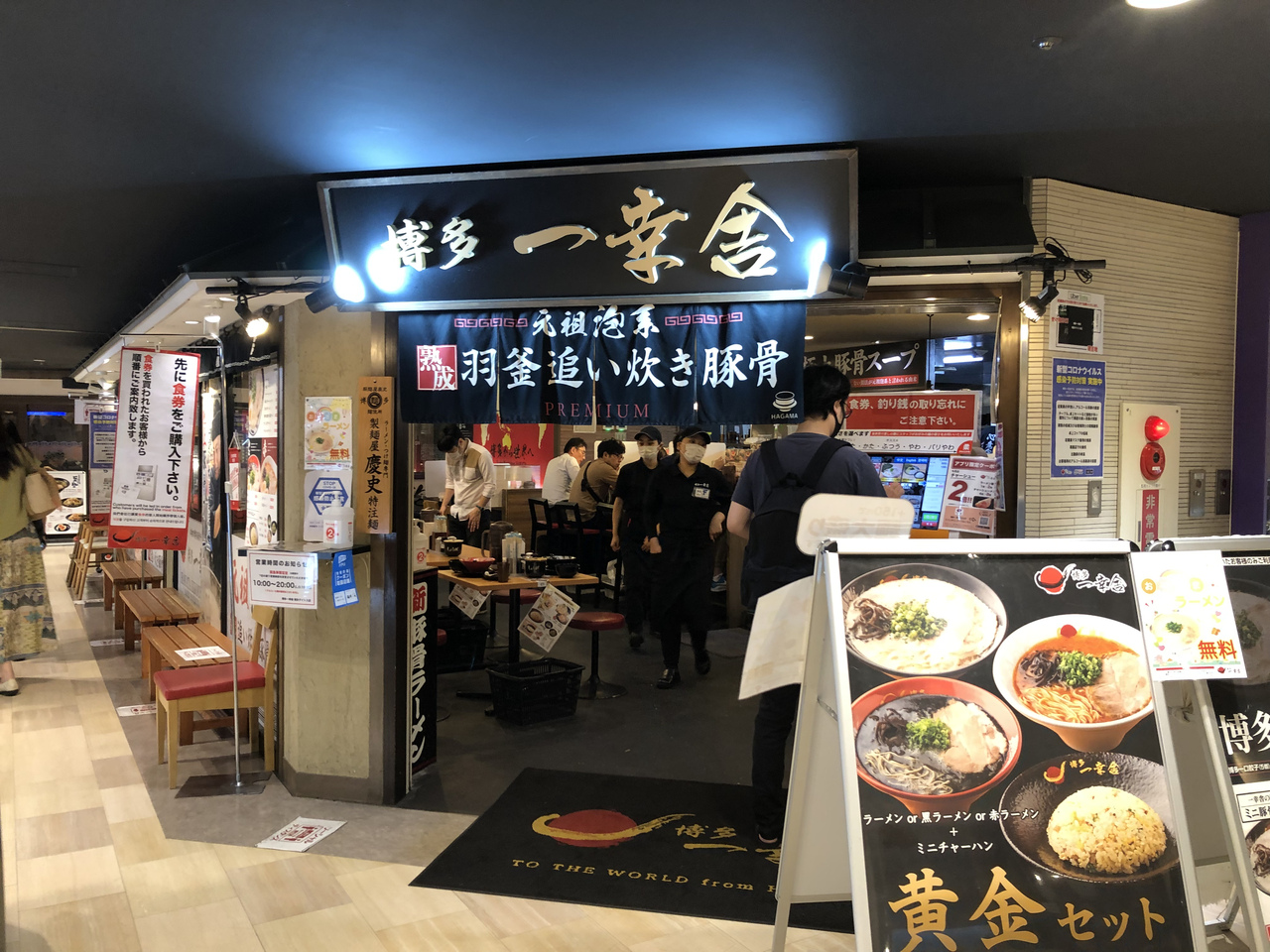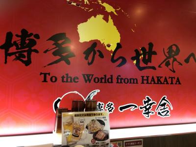 JR博多駅のめん街道にあるラーメン店の一つ。コンコースでもらった餃子無料券に誘われて入店。注文は食券。前の方が少しもたついていたが、わかりにくい機械かも。