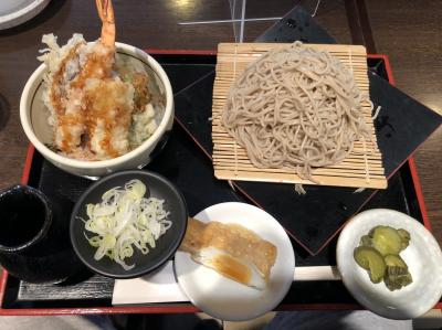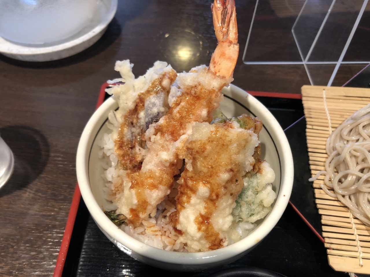 訪問した月曜日は、生姜焼きか天丼から選択だったので今回は天丼ランチを選択。天丼はもちろん揚げたて、サクサクで、海老、イカ、野菜の天麩羅はボリュームかある。蕎麦は、コシがかなりあり、喉越しが良い。蕎麦だけでも1.5人前はありそうな量。汁は結構濃いめ。わさびがついていなかったのは残念。