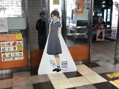 JR佐世保駅前にあるバスターミナル。もともとは佐世保市営バスが使用していた路線バスが発着する佐世保駅前停留所に隣接しており、こちらは福岡(させぼ号)、長崎駅行きの高速バスと長崎空港行きの特急バス、江迎・大加勢、平戸桟橋、松浦駅前行きの中距離バスが発着。頭端式のターミナルで、発車の際は乗車後、誘導によるバックを行い方向を変えて出発します。