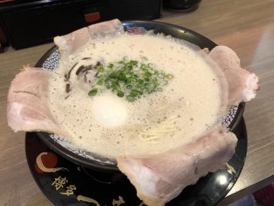 お店に入ると普段は味わえない豚骨臭。そして席に座り5分くらいラーメンが到着。まず、ラーメンのスープの白さときめ細やかな泡に驚く。しかし、決して脂っぽくなく、少し甘みががあり、豚骨臭も思ったほど強くない。麺はバリカタを頼んだが、これがちょうど良いあんばい。製麺屋慶史謹製の平打ち細麺とのことだが、スープとの相性は良い。テーブルにある刻み生姜を入れると、少し味に変化があり、少しさっぱりする。チャーシューは薄いので、知らないうちになくなっていたという印象。濃いスープながらも飽きずに最後まで楽しめるラーメンといえる。