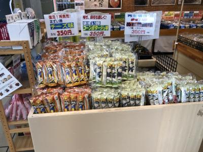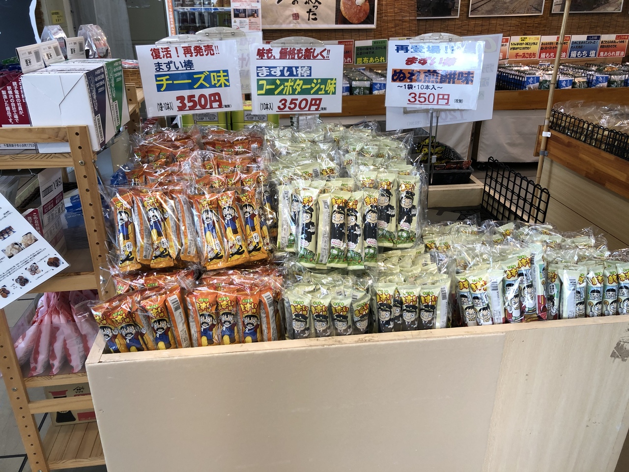 銚子電鉄の経営を支えるぬれ煎餅や近隣のお土産、銚電のグッズなどを買うことができる銚子電鉄直営のお土産店。「駅」と名乗るものの、銚子電鉄線からは離れた、国道126号線沿い、銚子駅から車で15分くらいのところにあり、イオンモール銚子に近い(当然、電車は来ません)。銚電の車体(800系など)と同じ、赤色と茶色のオリジナルカラーの建物で、踏切なども置いてあるのですぐわかります。犬吠駅と同じくぬれ煎餅の手焼き体験コーナーがありますが、コロナ禍で休止中。しかし、販売しているぬれ煎餅の種類は豊富で、このほか干物や佃煮、落花生、お酒など地元のお土産を扱っています。また、ファンにはたまらにい銚電のグッズなども取り扱っており、銚子のお土産を買うには一番良いかも。
