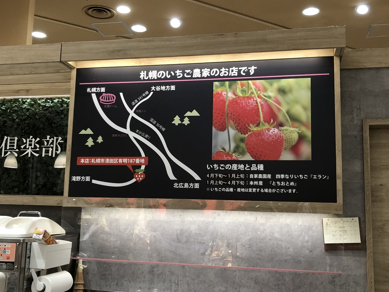 清田区有明のイチゴ生産農家(フラワーファーム大花園」)直営のスイーツ店。本店は清田にあり、アリオ札幌1階のお店は今のところ唯一の分店。清田のお店は某サイトのスイーツ百名店EASTにも選出されるほどの人気店で、札幌市中心部から少し離れている清田(地下鉄福住駅からタクシーで20分くらいのところにあるので、車がないときつい)まで行かなくても、こちらでいちごをふんだんに使用したパフェやソフトクリームが楽しめます。