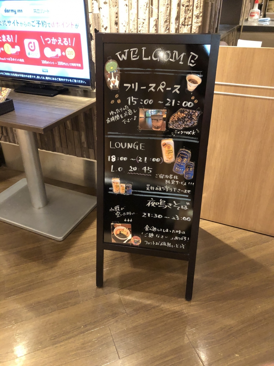 大浴場には露天風呂やサウナ、水風呂もあり、ゆっくり出来ます。ラウンジでは18時~ビールやソフトドリンクが飲み放題、21時30分~夜鳴きそばのサービスは嬉しい。