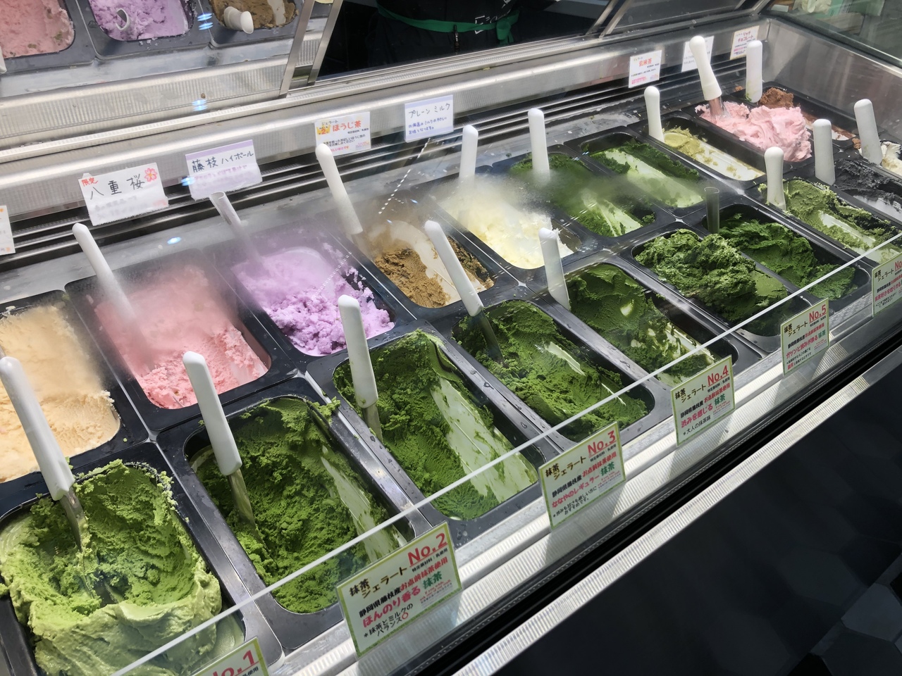 最近ではTBS「バナナマンのせっかくグルメ!!」で関口メンディーさん、MBS「所さんのお届けモノです!」でチャンカワイさんが食べたことをはじめ、多くの番組で芸能人が食べた「世界一濃い静岡抹茶ジェラード」が名物。No.1から7まで濃さが変わる抹茶デザートは、イタリア人も驚いてしまいそうな美味な味。他のジェラードよりも少し高いNo.7の世界一濃い静岡抹茶ジェラードは、茶葉をまるでそのまま練り込んだような真緑が印象的。しかし、お茶の濃さはしっかり味わえますが、くどさは全くなく、苦味もそれほどではありません。是非、ダブルカップかダブルコーンで、他の抹茶と食べ比べると、その濃厚さがわかります。このほか静岡発祥とされる和紅茶をはじめ、フレーバーは多数。休憩するスポットとしてもとても良いので、静岡に行ったら、是非行きたいお店の一つです。- 旅行時期