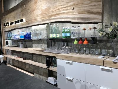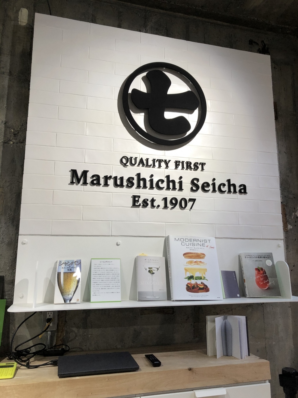 大きな「丸七製茶」の白暖簾が印象的なお店は、和風を基調としながらも、先進的なイメージを併せ持つデザインで、明るくおしゃれ。入り口と奥にティーバッグやお茶のお土産ギフトなど豊富な商品棚があり、正面にはジェラード販売コーナー。1階にもイートインスペースがありますが、2階には立ち飲みバーのようなお洒落なイートインスペースがあります。