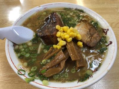 メインは金八ラーメンと金太ラーメンで、金八は焼豚2枚、金太は焼豚と角煮。どちはもコーンが入っており、これは特徴の一つ。岡山のラーメンではスタンダードな中細のストレート麺で、ビジュアルはコッテリとしているものの、意外とあっさりしたスープで、飲んだ後の〆のラーメンとしてもイケる。金太ラーメンの太肉は甘辛に煮込まれていて結構味は濃く、かなり柔らかくホロホロの食感。食べ応えは十分のラーメンで、繊細さはありませんが、食べた!と感想が出てしまいそうな、また、夜に食べたくなるラーメンです。- 旅行時期