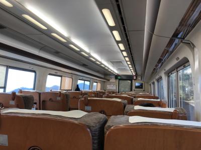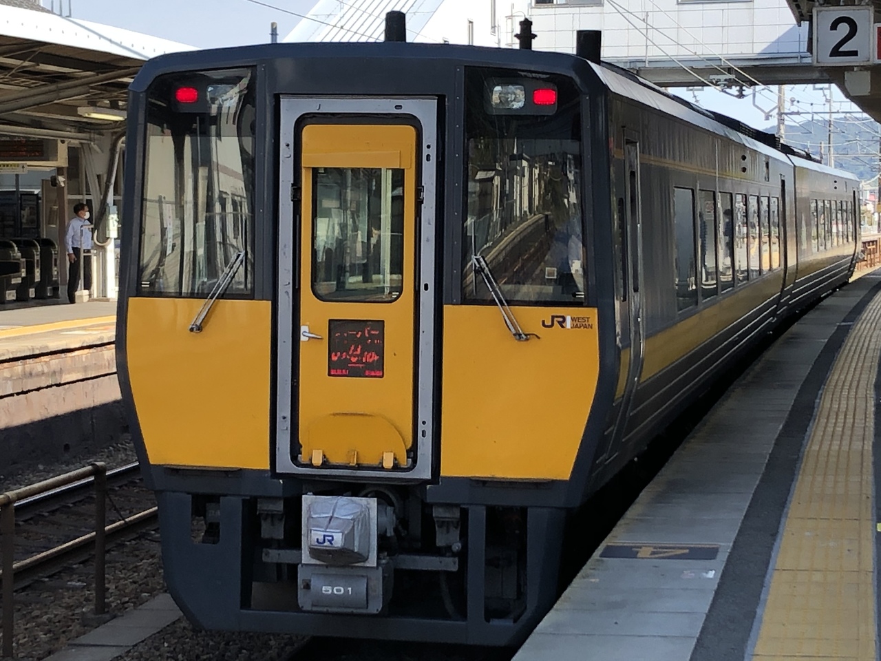 京都~鳥取・倉吉を結ぶJR西日本・智頭急行の特急。大阪~鳥取間を約2時間半で結ぶ、京阪神から鳥取への最短ルート。東京から陸路で鳥取に向かう場合も、姫路停車の「のぞみ」を利用し「スーパーはくと」に乗り換えるルートが約5時間で最も早く、7往復全ての列車が姫路でのぞみ号と接続しています。制御式振り子システムを持つ智頭急行のHOT7000系車両が使用されており、特に踏切のない智頭急行線ではスムーズに運行。因州和紙を使った扉をはじめ、ところどころに地域の特産品を用いた木目調の車内は、グリーン車だけでなく普通席の窓側席にもコンセントが設けられており、テーブルも大きいので、パソコンでの作業も余裕でできます。また、すべての車両にモニターが設けられており、運転席に設置されたカメラから映像が映し出されるなどのサービスもあります。また、1号車と5号車には、大きなキャリーバックも収納できる荷物置き場もあり便利。鳥取・倉吉まで快適な移動ができます。新聞報道によれば、2024年頃に現在使用されているHOT7000系を置き換える予定となっているとのこと。新型車の登場も待ち遠しい。