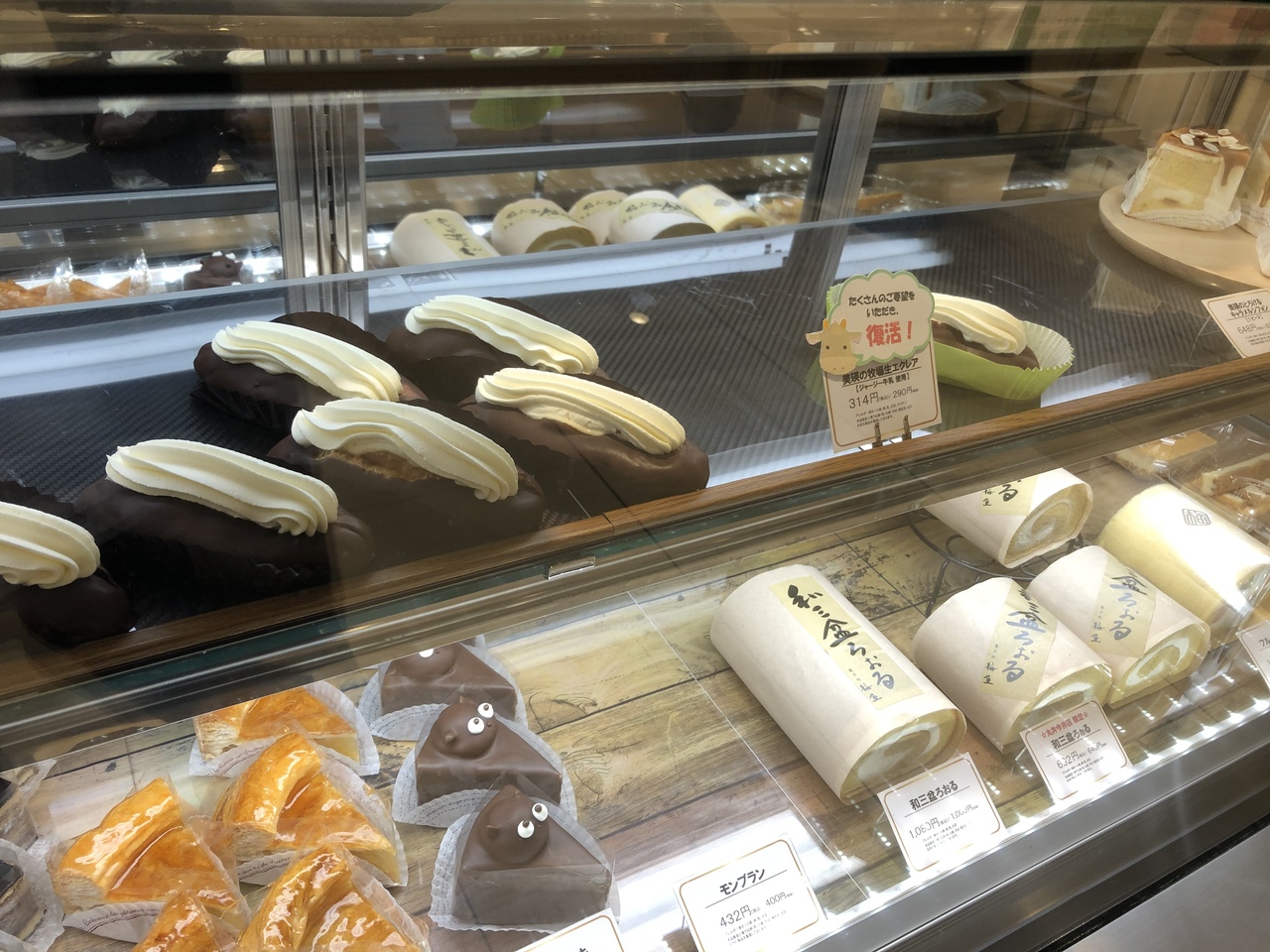 大正3年、旭川で創業きた和洋菓子店。丸井今井地下2階にあります。旭川ではシュークリームで有名なお店ですが、こちらはケーキとエクレアが中心のよう。北海道産ゆめぴりかの米粉を使ったロールケーキやエクレア、和三盆を使ったロールケーキなど、他店とは異なるケーキが多い。今回は、ジャージ牛乳を使用した限定商品「美瑛の牧場生エクレア」とモンブランを購入。エクレアはボリュームがあり、濃厚なミルクの味がしっかりして美味。モンブランは、クリームの中の栗がたまらない美味しさ。