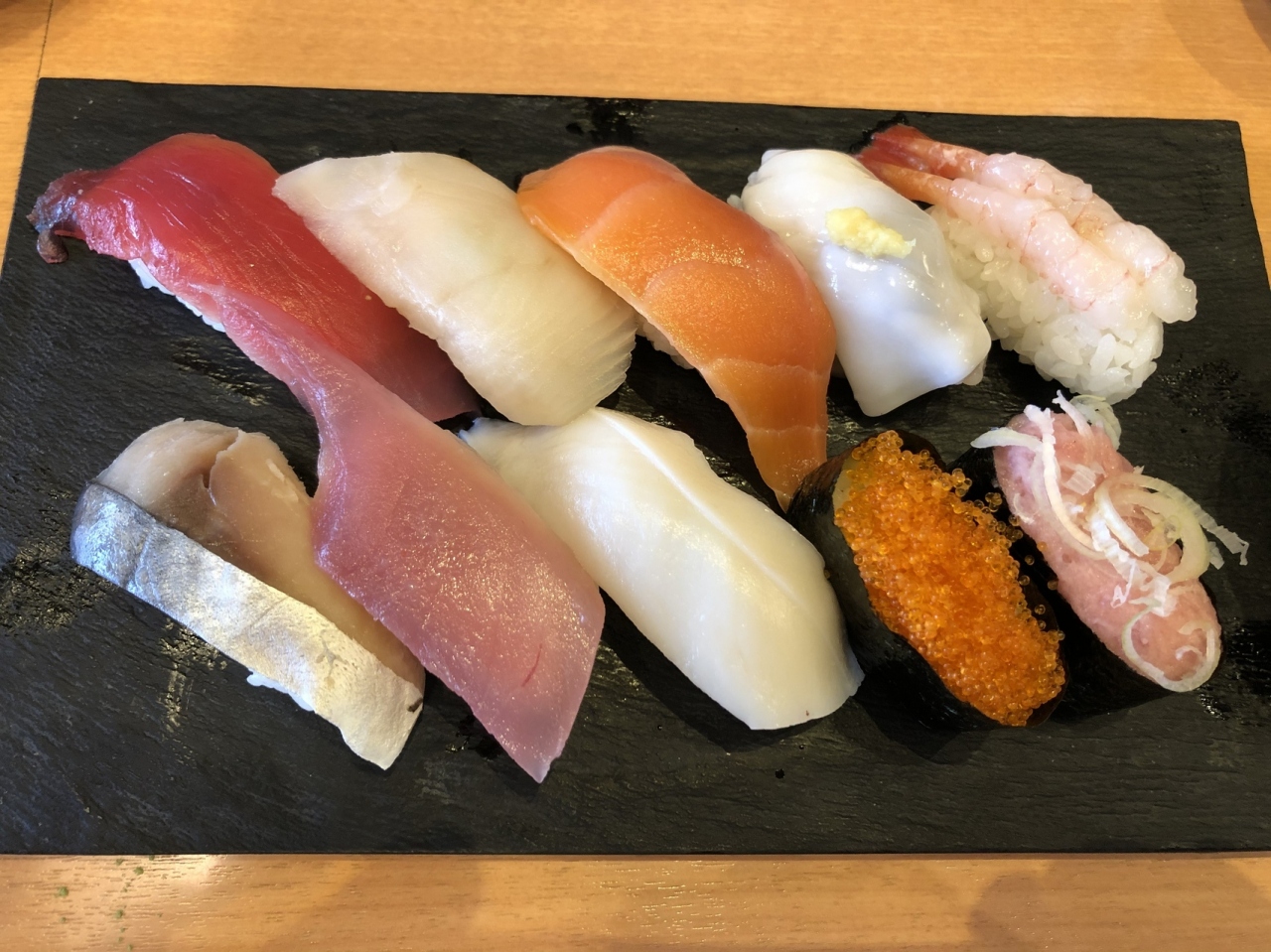 地下鉄東豊線元町駅から徒歩5分くらい、札幌市郊外にある回転寿司店。基本的には地元のお店で、特に平日限定のワンコインランチは、まぐろ、かれい、サーモン、やりいか姿、甘えび、〆さば、国産びんちょうまぐろ、たこ頭、とびっこ、中落ちサーモンの握り10貫、味噌汁、コーヒー付き(セルフ)でなんと500円。〆さばやタコ、甘海老などは北海道産のものを提供。これだけでも食べに行く価値あり。北海道産のネタを使うお寿司は、メニューに北海道のマークがついているのでわかりやすい。追加で頼んださんまは根室産、いわしは道産で、回転寿司のレベルではないくらい美味。北海道の回転寿司レベルを実感できるお店。