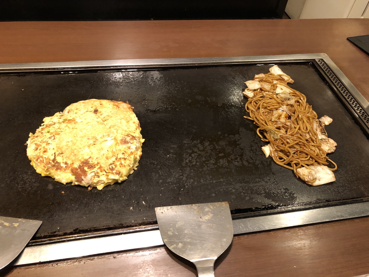 札幌駅パセオの1階にあるお好み焼き店。同じ「風月」という名前のお店が、ESTA、大丸にもありますが、ESTAは同じチェーン、大丸のお店は関西を中心に展開する「鶴橋風月」で、経営もコンセプトも全く異なります。こちらは道内のお店らしく、小麦粉、卵、キャベツ、長芋は北海道の食材を使用。今回は、お一人様セットのお好み焼きとミニ焼きそば、ドリンクがついた「スペシャルセット」をオーダー。お好み焼きは、原則、自分で焼きます。タッチパネルに焼き方が書いてあり、その通りにやれば、ちゃんとしたものになります(頼めば焼いてくれはようです)。混ぜ過ぎないことと空気穴を開けることがポイントのようで、やり方を守ればふわふわのお好み焼きできて、もちろん美味。焼きぞばは、味が少し濃い目ですが麺がモチモチしていて、ビールが欲しくなる味。ミニとはいえ結構なボリュームあり。ただ、鉄板の上に置かれるので、うまく食べないと、生地や麺が硬くなることがあるので注意。平日のランチ時は、セルフコーヒーがサービスになるのも嬉しい。