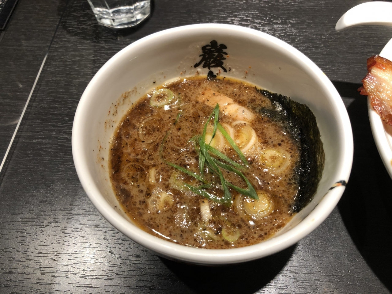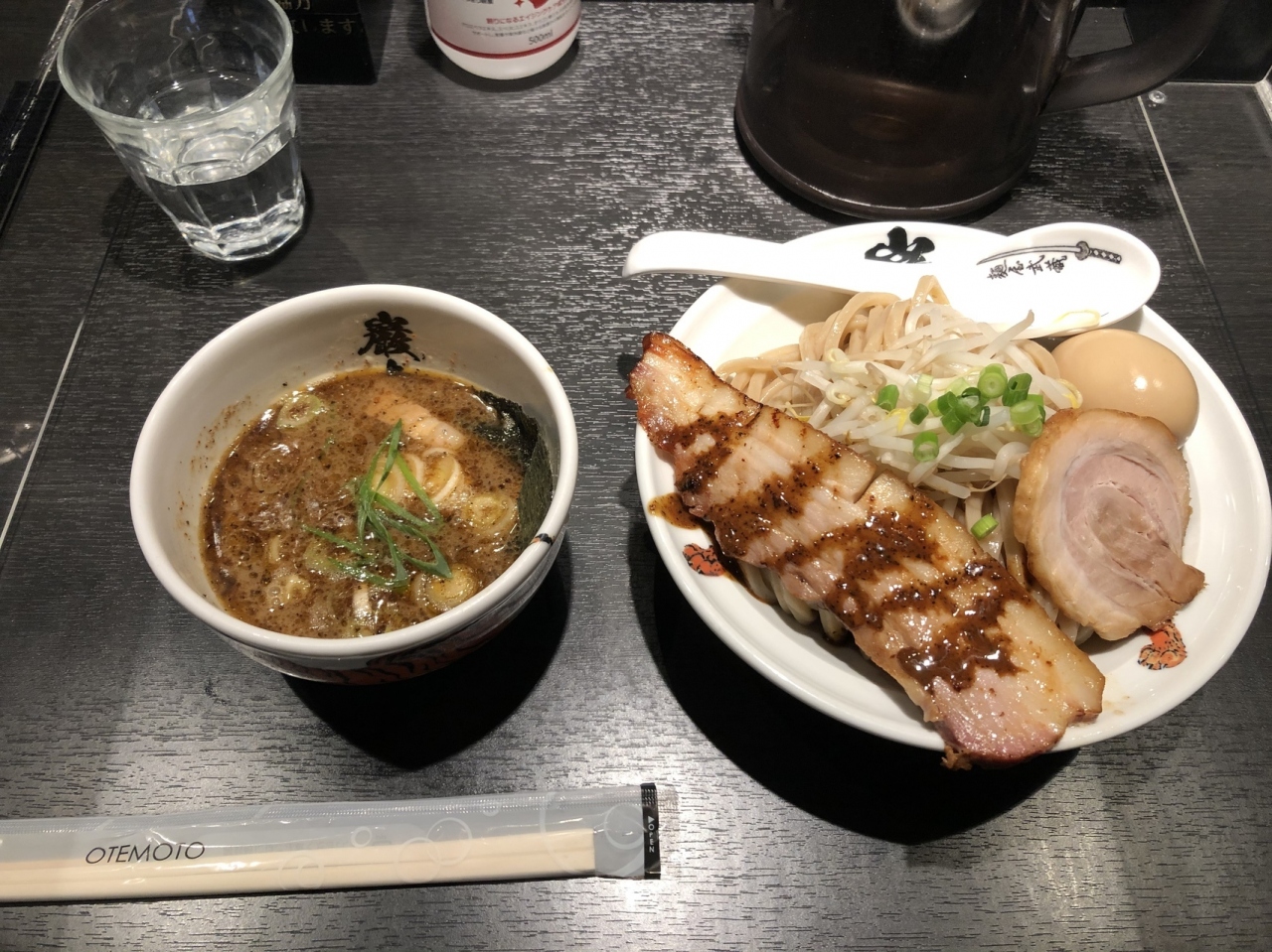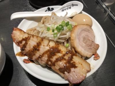 秋葉原駅から徒歩5分くらい、電気街の外れにある麺屋武蔵。秋葉原に2店舗あるうちの一つ。カウンターだけ、厨房がよく見えるお店のスタイルは、他の麺屋武蔵と同じ。こちらのお店だけで食べることができるのが、「チャーシューベーコン」。そこで、チャーシューベーコンの入った「巌虎つけ麺」をオーダー。10分くらいで提供。つけ汁は思った以上に黒胡椒が入っていて、スパイシー。麺はモチモチでつけ汁に絡みやすい太麺。さすがに特盛はやめて300g(茹で上がりは480gくらい)の「大」にしましたが、結構、パワフルな量でした。チャーシューベーコンは、特製のチャーシュータレに数日間漬け込んだ豚バラ肉を薫製にしたもので、注文を受けてから網焼きされます。香ばしい匂いのチャーシューベーコンは、ご飯のおかずにしてみたい一品。もちろん、スープ割りをして、最後まで楽しみました。場所が秋葉原だからか、つけ麺以外にも試行的なメニューがあり、「カリー麺」「マゼランチーノ」といった変わったものもあります。