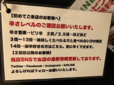 すすきのから少し離れた成田山札幌別院近くにあるラーメン店。地下鉄東豊線豊水すすきの駅から徒歩すぐ。辛味噌、辛醤油、辛塩が選べ、辛さのレベルは、絡み抜き(辛くない)から14辛(倍)、来店2度目以上であれば更に辛くできるらようです。また、カウンターには、痺れ(山椒)、ハバネロ、キャラライナリーパー(ギネス認定された世界一辛い唐辛子)が置いてあり、かけるのは自由。また、2倍と3倍で辛さのレベルがかなり異なるとのこと。今回は初めてだったので「2辛の辛味噌ラーメン」をオーダー。見た感じは赤くないので、辛そうに見えないかも。辛さがはほどほどとはいえ、豚骨と鶏ガラをじっくり炊き上がたスープと北海道むかわ町穂別の中沢農園の唐辛子、自家製辣油によるスープは、コクの中に辛さが染み渡る感じで、クセになる味。寒い時にはかなり嬉しい。麺は中太でスープによく絡みます。もやしのシャキシャキ感、焼豚のトロトロ感もいい感じ。ライスを頼むとスープを最後までいただけます。マスクながらもイケメンさがわかる店員さんのサービスもグッドです。
