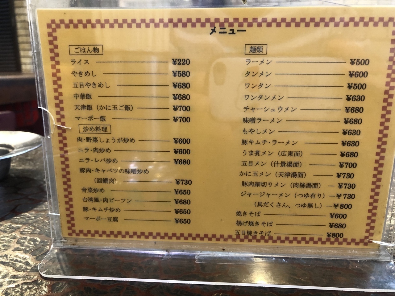 京王線芦花公園駅北口にある、いかにも町中華といった感じのお店。テーブル席が5つとカウンター席のみの家族でやっているお店という雰囲気。メニューを読んでいる時間もあまりなかったのて、ボードに書いてある「豚肉と青菜炒めの定食」をオーダー。カウンター前の厨房では、大きな中華鍋で青菜を炒めており、その匂いがたまらない。運ばれてきた青菜炒めは、青菜はシャキシャキしていて、塩味がしっかりきいている。ご飯が進むこと間違いなし。大根の煮物も冷えているものの、味がしっかりしていて美味しかった。周辺には居酒屋と少し並んでいるラーメン店以外に飲食店が見つけられず入ったお店でしたが、結構アタリかも。