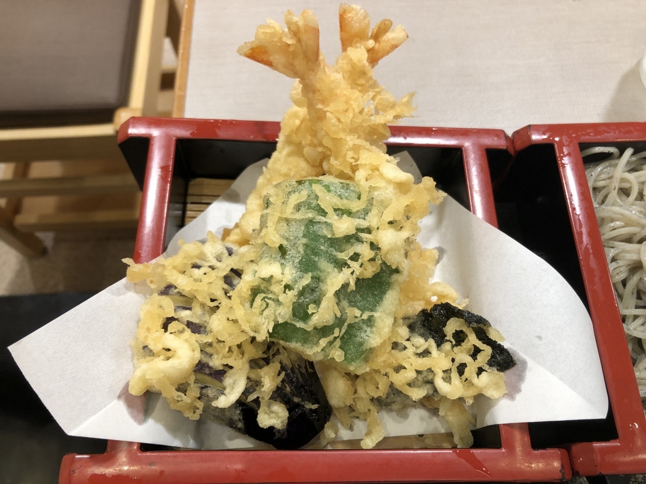 大通駅から地下を歩いて数分、丸井今井の手前のビルの地下1階にあるお蕎麦屋さん。札幌市内を中心に10店舗展開しているお店で、自家製麺工場から直送された黒ごまが擦り込まれた、喉ごしの良い「ごま蕎麦」が味わえます。日高幹部と土佐の鰹節がベースのかえしを使った蕎麦つゆは、蕎麦の香りを邪魔しない、しかししっかりとした味で美味。大通2丁目店だけのサービスで、1237円の天せいろが937円。海老天2つ入っており、かなりコスパが良いと思う。