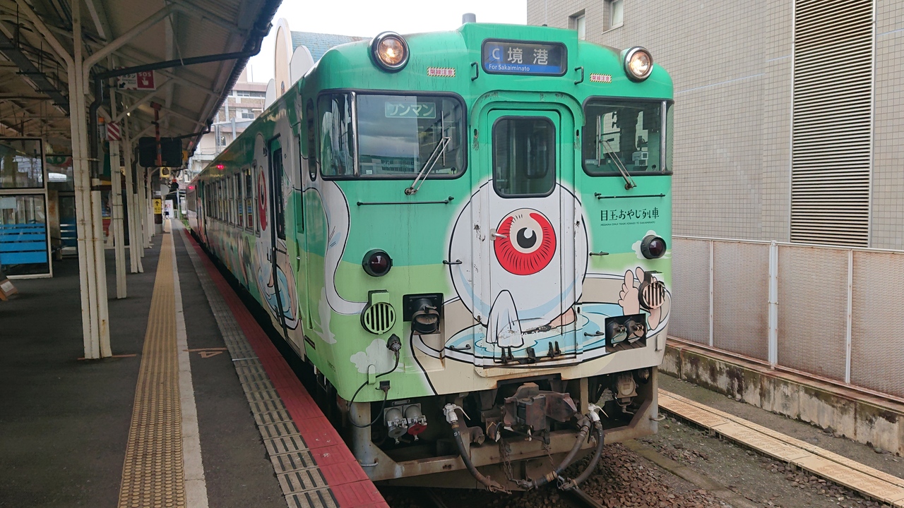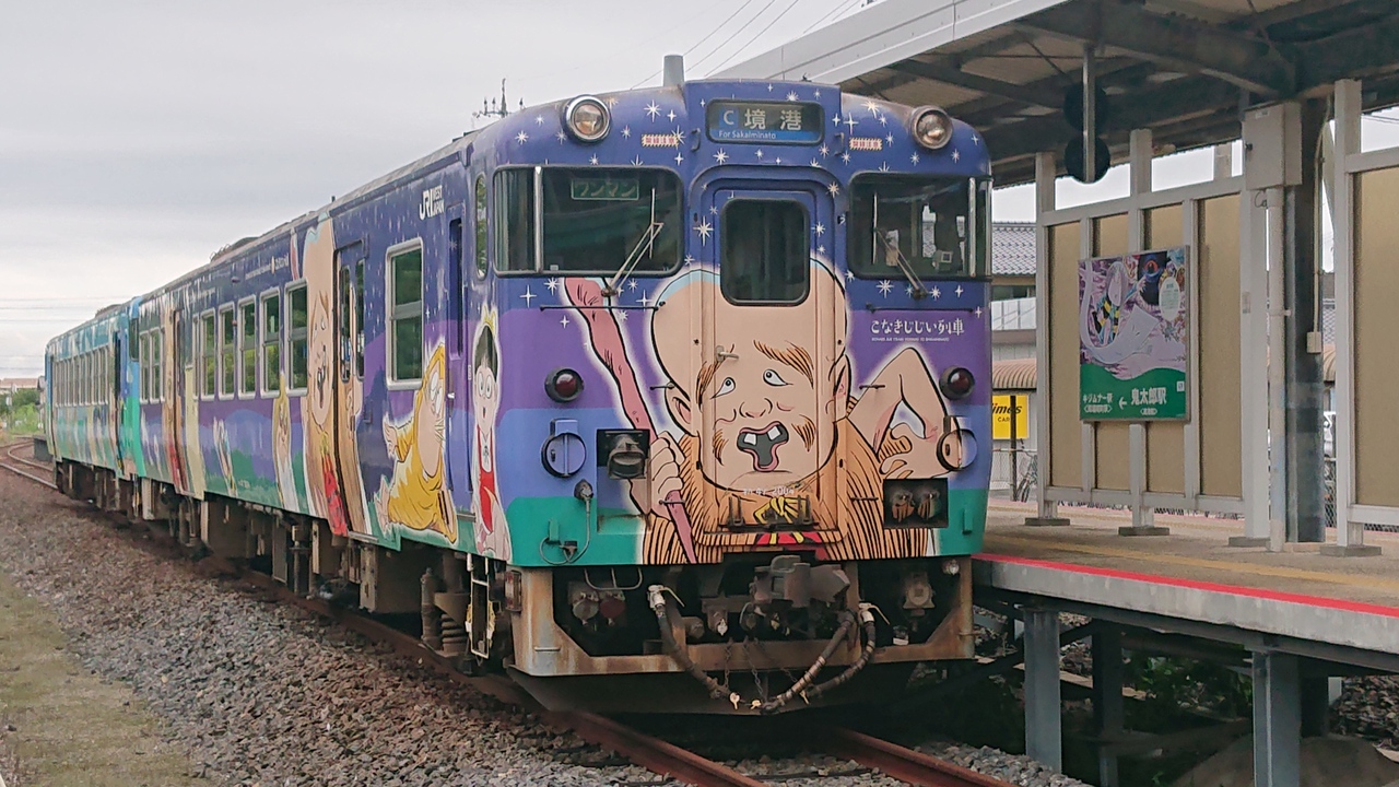 米子~境港間16駅、18キロを約40分で結ぶJR西日本のローカル線。近年、水木しげるロードへ訪れる観光客でも人気となっている「鬼太郎列車」でも有名。山陰初の鉄道として米子~御来屋間とともに1902年に開通した歴史ある路線。休日は観光客の乗車も多いものの、普段は生活路線で乗客は結構多く、米子空港のターミナル近くにも駅があり、空港アクセスも担っています。また、皆生温泉や弓ヶ浜など境港以外にも観光地があります。ICOCAやSuicaなど交通系ICカードの利用は全線可能です。