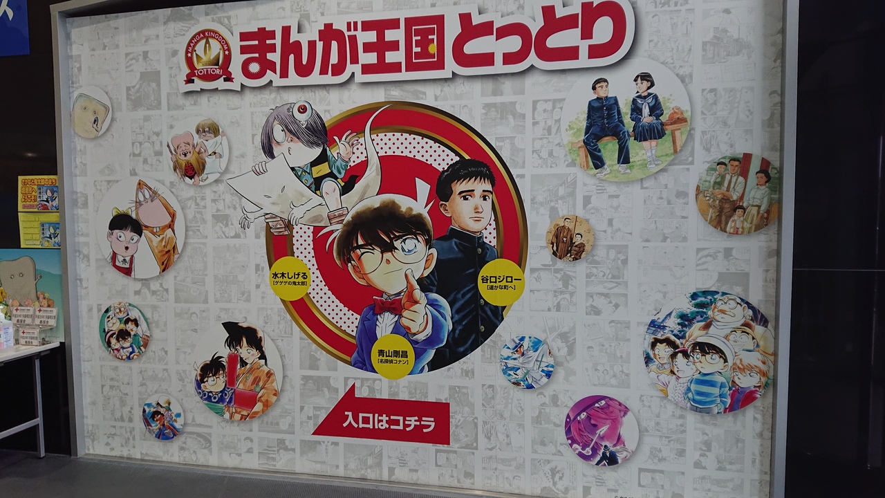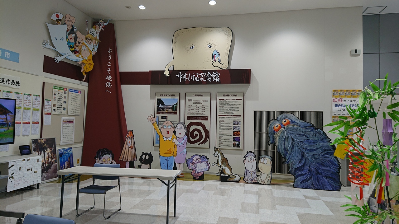JR境港駅に隣接したフェリー乗り場、観光案内所、飲食店、売店、入浴施設などを持つ鳥取県の複合施設。2階には、人と妖怪をマンガで交流し、情報を発信する場である「境みなと・オアシス」という展示コーナーがあり、水木しげるさんや、名探偵コナンでお馴染みの青山剛昌さん、孤独のグルメの作画で有名な故谷口ジローさんを中心に、鳥取県出身のマンガ家や「まんが王国とっとり」について紹介。原稿をモチーフにしたオブジェや記念撮影コーナー、漫画作品もあります。個人的には、米子地元の怪人「ネギマン」がお気に入り。敵がお隣島根の「pi_・ジョー」というのも笑える。