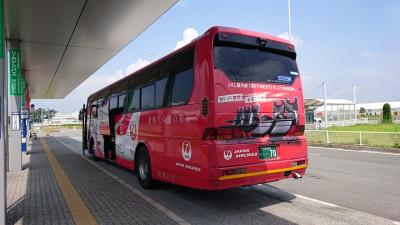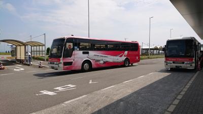 徳島空港のアクセスはリムジンバスか路線バス利用になりますが、徳島駅へのアクセスはフライトに接続して運行されるリムジンバスが断然便利。徳島駅と空港を約30分、600円で結んでおり、とくしまばすが運行。出発便への連絡バスは徳島駅を概ねフライトの時間の75~90分前に出発。到着便からの連絡バスは到着後10分を目処に出発します。交通系ICカードの利用不可。スマホでの決済が可能で、2枚綴り、12枚綴りの回数券も用意されており、若干割引がされています。また、車内にはFree Wi-Fiも完備。JAL便が多いためか、 真っ赤なJALの全面広告のバスが多く、ANA便の接続便でも使用されています。