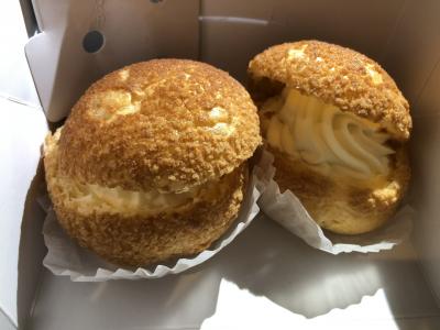 札幌駅直結のESTA(エスタ)(ビックカメラの入るピル。元札幌そごう)の地下1階にある北菓楼。北菓楼の札幌市内デパート内のお店は、丸井今井や三越にはないので、大丸かこちらのESTAで。もちろん、一番人気はジャンボシュークリーム「北の夢ドーム」。飛行機のキャビンアテンダントやパイロットが火付け役となったシュークリームも、閉店前でも数個残っていました。ビスキーをのせた生地はサクサクとした食感、カスタードクリームと生クリームを重ねた二層のクリームとの相性は抜群。人気の理由もわかります。