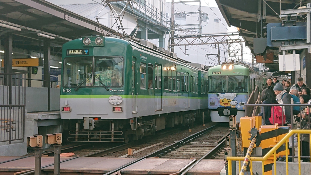 京阪電気鉄道の御陵~びわ湖浜大津間を結ぶ京津線と石山寺~浜大津~坂本比叡山口間を結ぶ石山坂本線の2路線の総称。京津線のびわ湖浜大津付近と石山坂本線の三井寺~びわ湖浜大津間は併用軌道で、京阪本線に比べて小型の、普通の電車と路面電車の中間のような電車が走っています。現在、京津線と石山坂本線の運行は完全に分かれており、びわ湖浜大津で接続。京津線は20分間隔、石山坂本線は10分間隔なので、石山坂本線の二本に一本が京津線に接続。京津線は御陵から京都市営地下鉄東西線の太秦天神川まで乗り入れています。1997年の地下鉄東西線開業前までは京阪本線の三条(京津三条)~御陵間の路線があり、一部は併用軌道を走っていました。地下鉄を走る4両編成の電車が、併用軌道を走る姿は圧巻で、絵になります。ただ、びわ湖浜大津から三条方面に向かう場合、京津線と地下鉄東西線の運賃は別に計算されるため割高になります。特に以前は大津線から三条を介して京阪本線まで通しで運賃が計算されましたが、現在はバラバラなので、かなり高い気がします。一方、石山坂本線は、京津線とは異なり2両編成。以前は京津線の併用軌道を走っていた車両が走っています。地元ローカル輸送がメインですが、比叡山延暦寺、三井寺、紫式部が源氏物語の着想を得たとされる石山寺をはじめ沿線には観光地が多く、観光客にも利用されています。併用軌道区間あり、61‰の急勾配あり、京阪線唯一のトンネルあり、石山坂本線にはラッピング電車がありと、乗り鉄には楽しい路線でもあります。