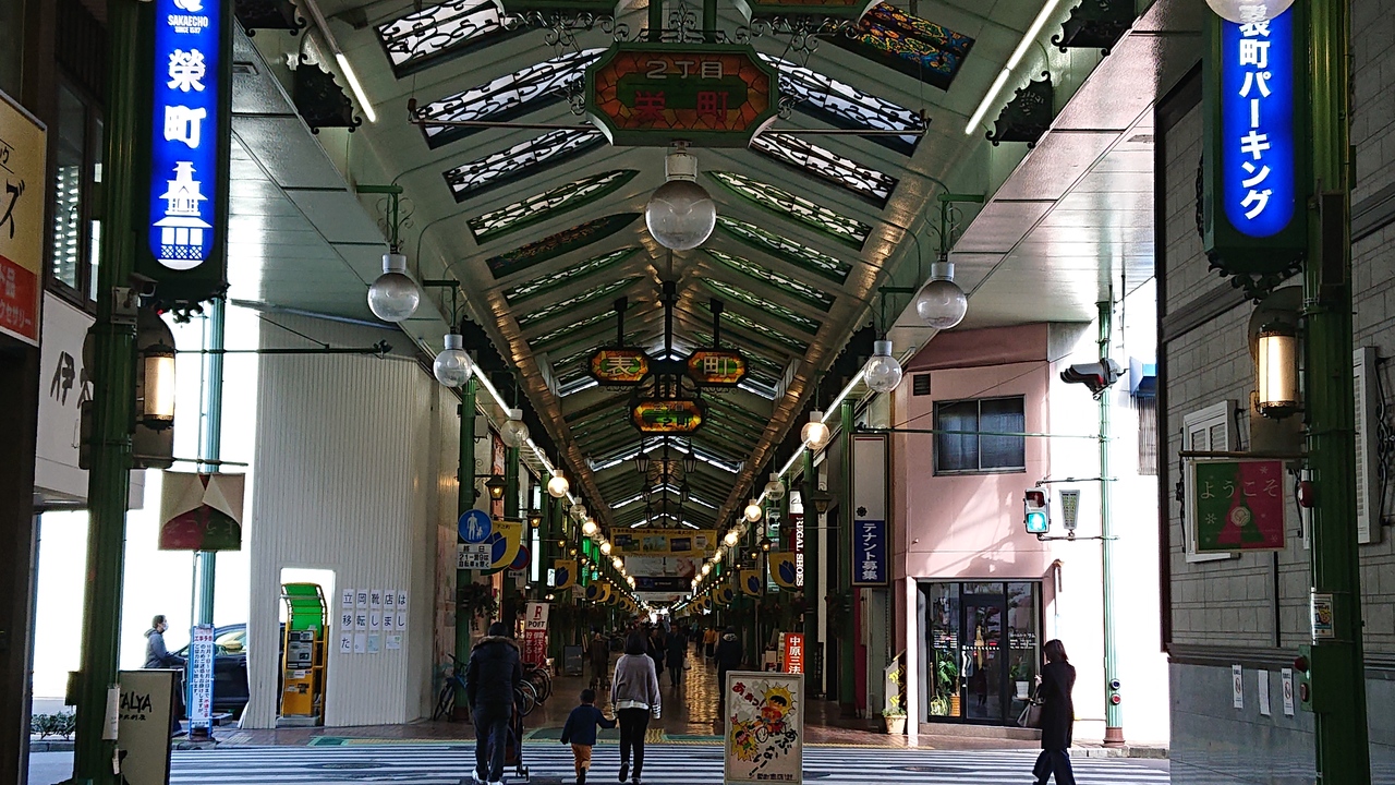 岡山市街の中心的な繁華街。桃太郎通りから国道250号線に至るやく1キロのアーケードのある8つの商店街の総称。慶長2年(1597年)、岡山城天守閣の完成と同時に山陽道を城下町の中を通るように移し、備前国内から商人、職人を集めて城下町に住ませ、形成された商人町を起源とする歴史のある商店街。途中、地元の百貨店天満屋岡山本店もあり、周辺にはブランド店が並ぶ。以前よりはシャッターを下ろした空き店舗も増え、勢いも衰えたとのことですが、まだまだ元気な商店街のようにも見えます。また、外国人観光客向けの一括カウンター制度を全国で初めて導入した商店街で、20店舗が導入。天満屋内で手続きができます。