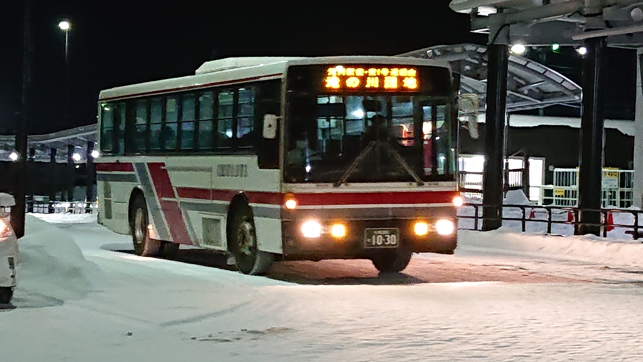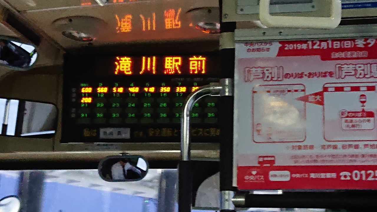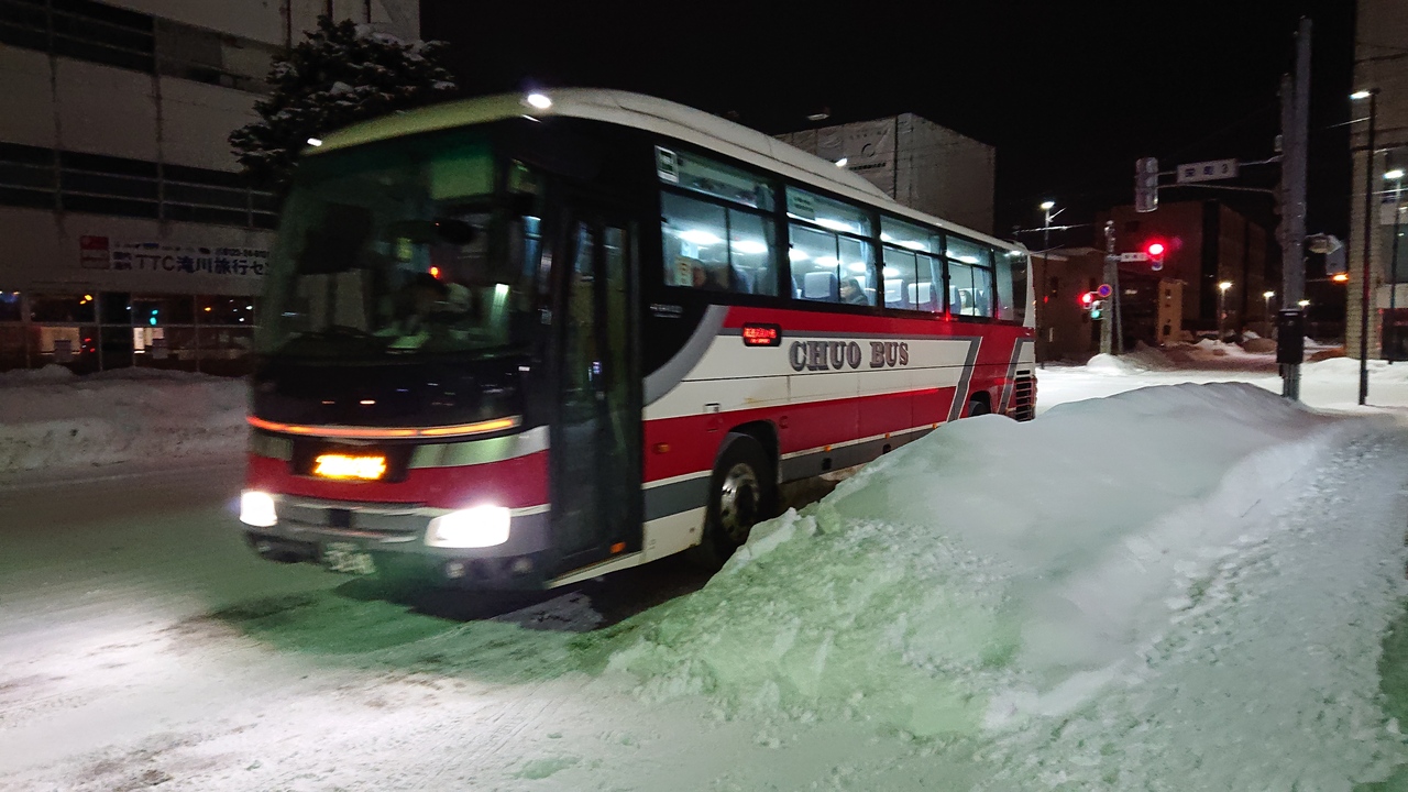 滝川駅前のバスターミナルとして、北海道中央バスや空知中央バスの路線バスと、札幌行き「高速たきかわ号」をはじめとする都市間バスが発着していましてが、2018年3月末をもって廃止され、窓口と路線バスは新設された駅前広場に移転しました。しかし、都市間バスの乗り場だけは、JRとの競合から駅前広場の乗り場に移転せず、スマイルビル前に設置された乗り場に移転。このため、待合室から高速バスへは若干とはいえ移動時間が必要になり、停留所には屋根も壁もないので、冬場はかなりのサービスダウンになりました。