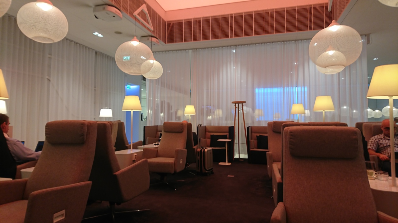 ヘルシンキ・ヴァンター空港の出国審査より34番ゲート先にあるラウンジ。2014年に新設された比較的新しいラウンジで、2019年にはさらに改装されて「Finair Platinum Wing」に生まれ変わりました。入り口はフィンエアーのラウンジと同じカウンターで、向かって左側にあります。ワンワールドのエメラルドステータスバーかファーストクラス搭乗客のみが利用できるラウンジであり、シャワークライミングブースやフィンランド式のサウナも完備(サウナに入る時間はなく断念)。あまり広くはありませんが、いかにも北欧のオシャレなデザイン、かつ機能的な椅子が並び、落ち着きます。ビュッフェは、酒の肴風のメニューが中心で、味は日本人には少し大味に感じるかも。さーもんは美味でした。ワインやシャンパンは、パーサーに注文する必要があります。