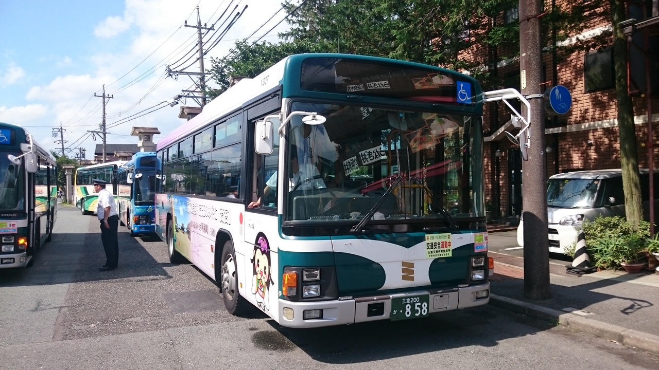 三重県全域と周辺の愛知県、和歌山県、奈良県と京都府の一部を走るバス。東京でも南紀白浜線・南紀勝浦線・伊賀線といった高速バス、名古屋では名鉄バスセンターから出発する長島温泉、西桑名ネオポリス(イオンモール桑名)行きなどのバスを見かけるので、三重県以外の方でもお馴染み。主要都市の津、四日市、桑名市内には充実した路線網を有しており、三重県の主要駅には必ずと言って良いほど「SANKO」の停留所と、白と緑のカラーのバスを見かけます。また、伊勢市駅・宇治山田駅から伊勢神宮・内宮まで、休日は10分おきに運行しており、外宮も通るので効率的に参拝することが可能。鳥羽水族館やミキモト真珠島への周遊バスもあります。三重交通のバスは、以前は屋根にも板を張って広告を掲げており「商売熱心だなぁ」と感じましたが、現在でも少なくなったものの車体の側面や後部にたくさんの広告を設置されています。