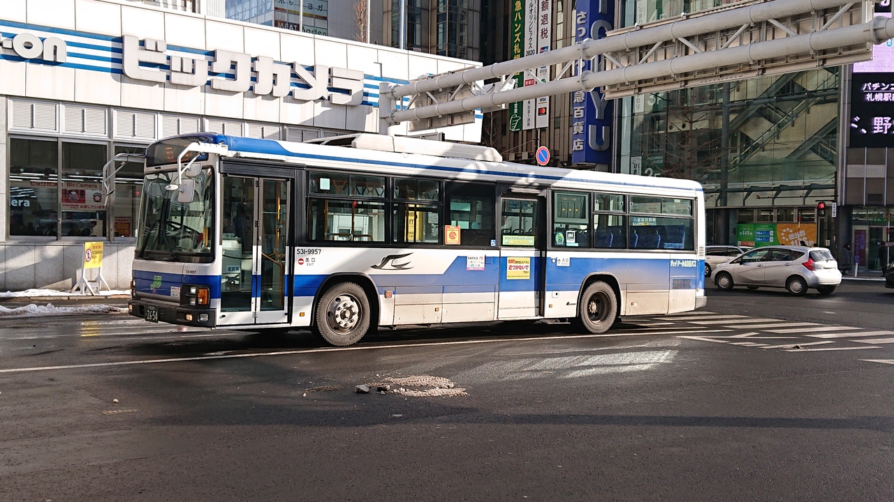 JR北海道の子会社で、札幌市中心部と手稲、琴似、厚別など札幌市郊外を結ぶ路線と札樽線や札幌~旭川間の高速バス、日勝線、深名線を運行するバス事業者。以前は「北海道各地を走るローカルバス」という印象でしたが、2000年にJR北海道からの分社後は、札幌市内と郊外の住宅地を結ぶ路線と高速バスに特化しつつあり、路線によっては本数も多いので「都会のバス」というイメージ。特に2003年に札幌市営バス琴似営業所を譲受してから、その性格がさらに強まり、他の地域のJRバスとはイメージが異なります。手稲方面から宮の沢駅経由札幌行きのバスにたまに乗りますが、札幌中心部での乗客も多く、地下鉄東西線と並走する宮の沢から札幌市内までの乗客も多い印象です。