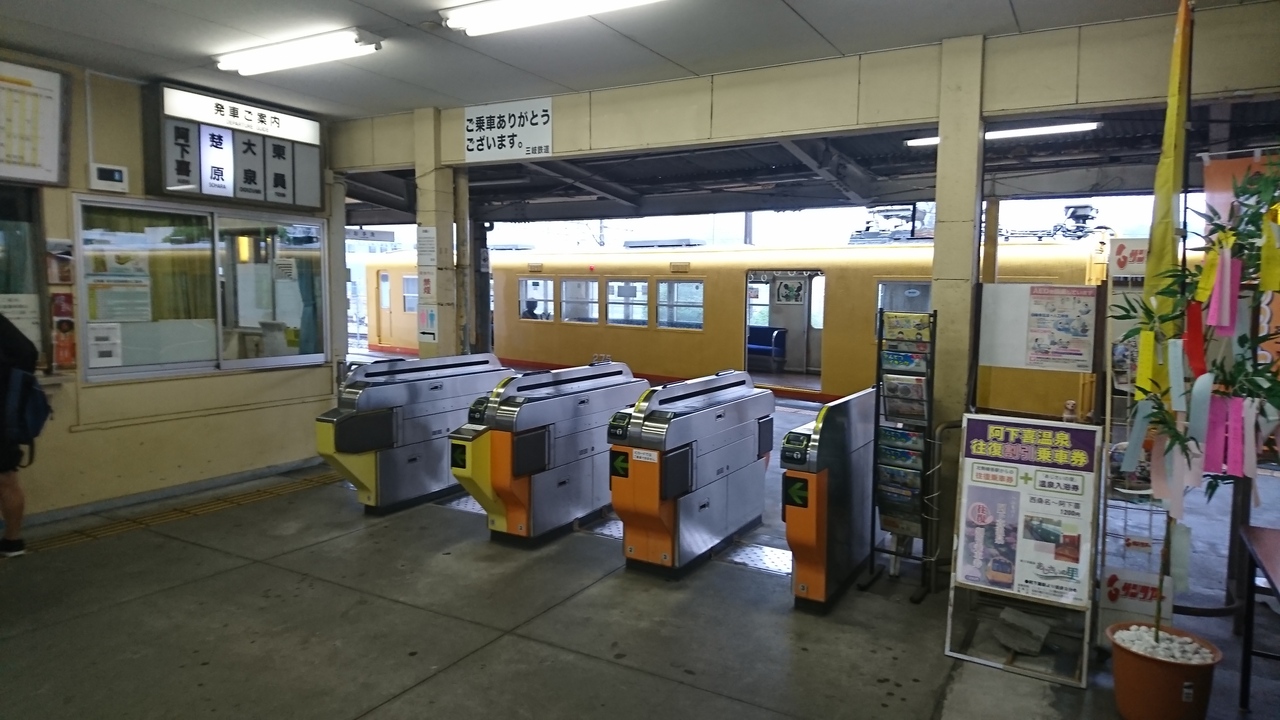 JR・近鉄桑名駅に隣接する西桑名駅からいなべ市北勢町の阿下喜駅までの20.4キロを結ぶローカル線。途中13駅あり、ほぼ員弁川に沿って左岸を走り、右岸にはほぼ並行して三岐線が走りますが連絡駅はありません。列車は朝夕が15~20分間隔、日中は30分間隔で、西桑名発の場合、概ね阿下喜行きと阿下喜より二つ手前の楚原行きが交互に運行。ちなみに終点の阿下喜駅から三岐線伊勢治田駅までは2キロ、徒歩30分くらい。なんと言っても北勢線の特徴は、線路幅762m、車両幅2.1m、車両長15mコンパクトな鉄道であること。762mの鉄道は日本には三路線のみ。車内もかなり狭く感じられます。もともとは北勢鉄道として開業、三重交通との統合を経て、1965年に近畿日本鉄道(近鉄)に。2000年に近鉄の経営改善のため廃止・バス転換が検討されましてが、地元の反対により存続。2003年4月に三岐鉄道が買収し、今の形になりました。車両が黄色三岐カラーになると同時に高速化と冷房化工事(1両だけ冷房なしの編成あり)が行われ、乗り心地も改善されましたが、一般の電車に比べると揺れもあり、吊り掛け駆動の独特の走行音も健在。駅などのリニューアルも進められており、サービスも向上しました。
