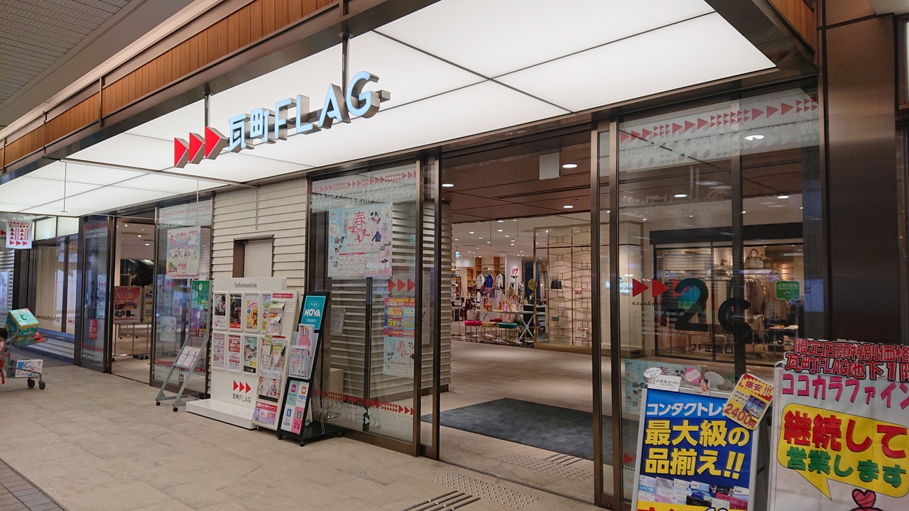 ことでん瓦町駅に直結した地上11階、地下3階建ての複合施設。2階にはことでんの改札口、1階にことでんの乗場があり、その分売場は少なくなっています。1997年4月にそごう(倒産前)との合弁の「ことでんそごう」としてオープン。そごう破綻後の2001年4月に「高松天満屋」として再オープン。しかし、2014年3月に閉店。その後も一部の店舗の営業は続けられ、2015年10月に「瓦町FLAG」として再々オープンしました。現在、店舗があるのは地下1階~5階と10階のレストラン、11階のビアガーデンのみで、6、7、9階はオフィスやクリニック、8階はオフィスになっています。2020年3月現在、地下1階の食料品スーパーが撤退してしまったためやや不便ですが、3階にはJUNKUDOやSofmap等、有名店も入っており便利。ロフトが移転してしまったのが惜しい。