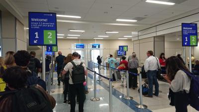 アメリカ・テキサス州ダラスとフォートワースの間にえる国際空港。広さはマンハッタン島よりも大きく、総発着数は世界第三位。総旅客運送数世界一位でアメリカン航空のハブ空港であり、JALも直行便を飛ばしています。5つのターミナルと7本の滑走路を持つものの、発着枠の7割はアメリカン航空で、ターミナルA、B、Cの3つはアメリカン航空のみ。国際線はターミナルD、LCCやエア・カナダ、デルタ航空、ユナイテッド航空、アメリカン航空の一部がターミナルEとなっており、ワンワールドアライアンスメンバーにとってはお馴染み、逆にスターアライアンス、スカイチームメンバーには使うことの少ない空港かもしれません。アメリカン航空の飛行機がタラップに並ぶ光景は圧巻。ターミナル間の移動はスカイリンクを利用。24時間運行、2~3分置きの運転ですが、内回り、外回り、パーキング行き等行き先があるので、搭乗口をしっかり確認してホームの案内板でのチェックが必要。同じターミナルでも細かく駅が設定されています。入国審査はAPCが導入されており、あまり時間はかかりません(故障している機械がある場合がある)。復路の場合、アメリカン航空からワンワールドエアラインへの乗り換えは非常に楽で、荷物の受取もなく、出国審査もないので、乗り換え時間も短めに設定されています。ターミナルDには、お土産屋さんや免税店、飲食店も他の空港並みにはありますが、期待しすぎない方がよいかもしれません。なお、ダウンタウンへのアクセスは、タクシーや相乗りのバンが中心。DART(トラム)での移動も可能で乗車時間は1時間程度ですが、セキュリティエリア外にいる場合、ターミナルDからはTerminal LinkでA10まで移動する必要があります。