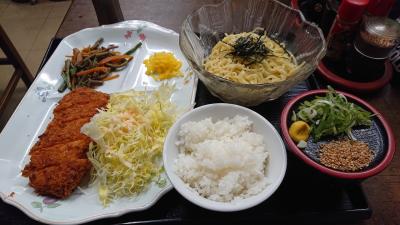 所沢駅から徒歩数分。ブロペ通りから路地に入る飲食街のようなところにあるお店。夜は完全な地元の飲み屋。昼からでも飲んでいるお客さんがいてそそられましたが、車だったので諦める。ここだけ昭和の雰囲気。やや入るのに勇気がいるかもしれませんが、女性の一人客も。所沢だけあってライオンズのポスターがどーんと貼ってある。お水が真鍮のような器で出てくるところも雰囲気をかもし出す。日替りサービスのセットから、エビステーキカツと 麺(ラーメン、うどん、そば、ソーメン、ざる中華から選択)をオーダー。かつは揚げたてサクサクで美味。麺はツルツルシコシコでしたご、少し汁が濃い目。ボリューム満点のランチ。今度は夜に行きたい。